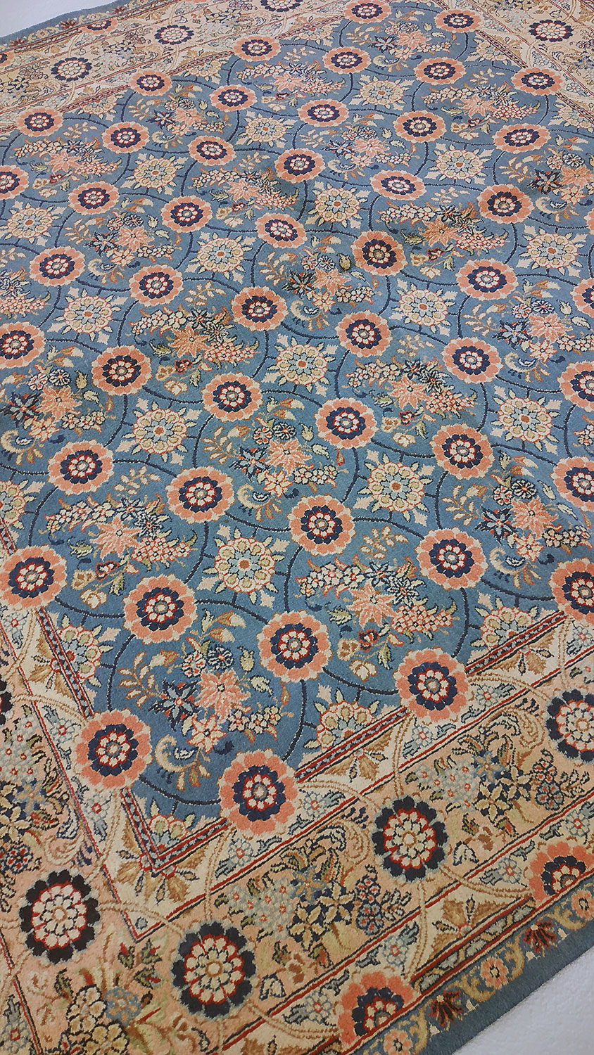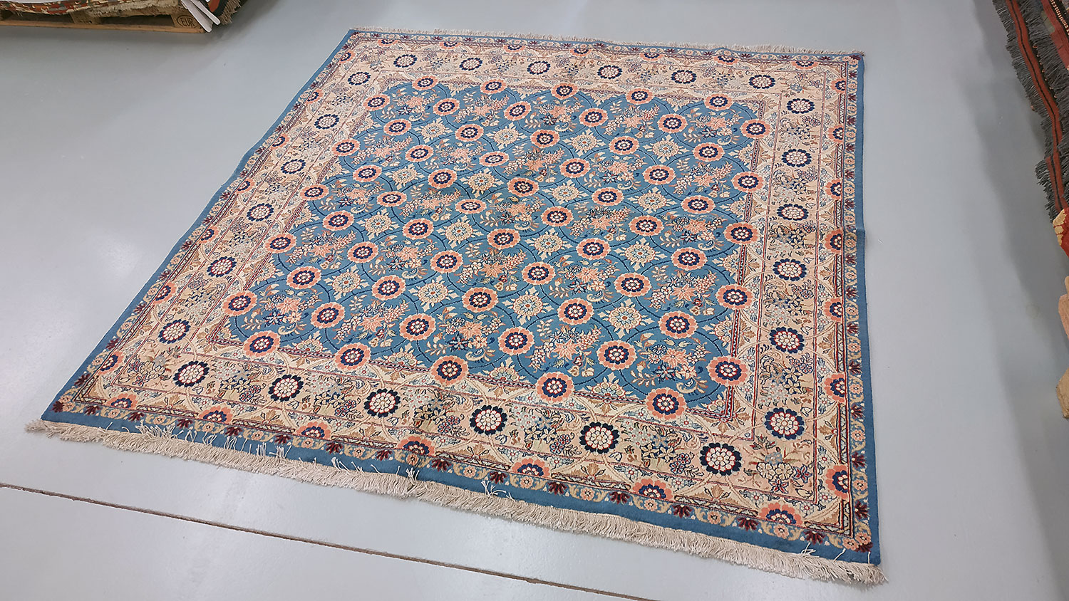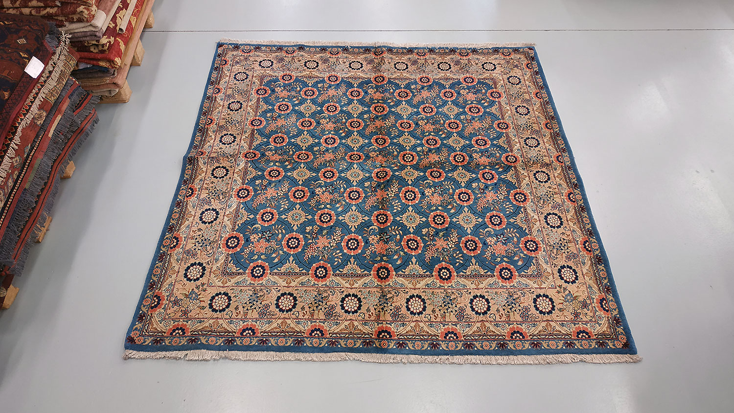 Dimensions : 202 x 197 cm -laine- Pays Iran - Épaisseur : 10 mm - Densité de nouage : 160.000 Nœuds au m² - Surface : 3.98 m² - Poids : 11.94 Kgs - Age : contemporain - Confection : Noué main - Forme : Tapis carré - Type : Tapis persan