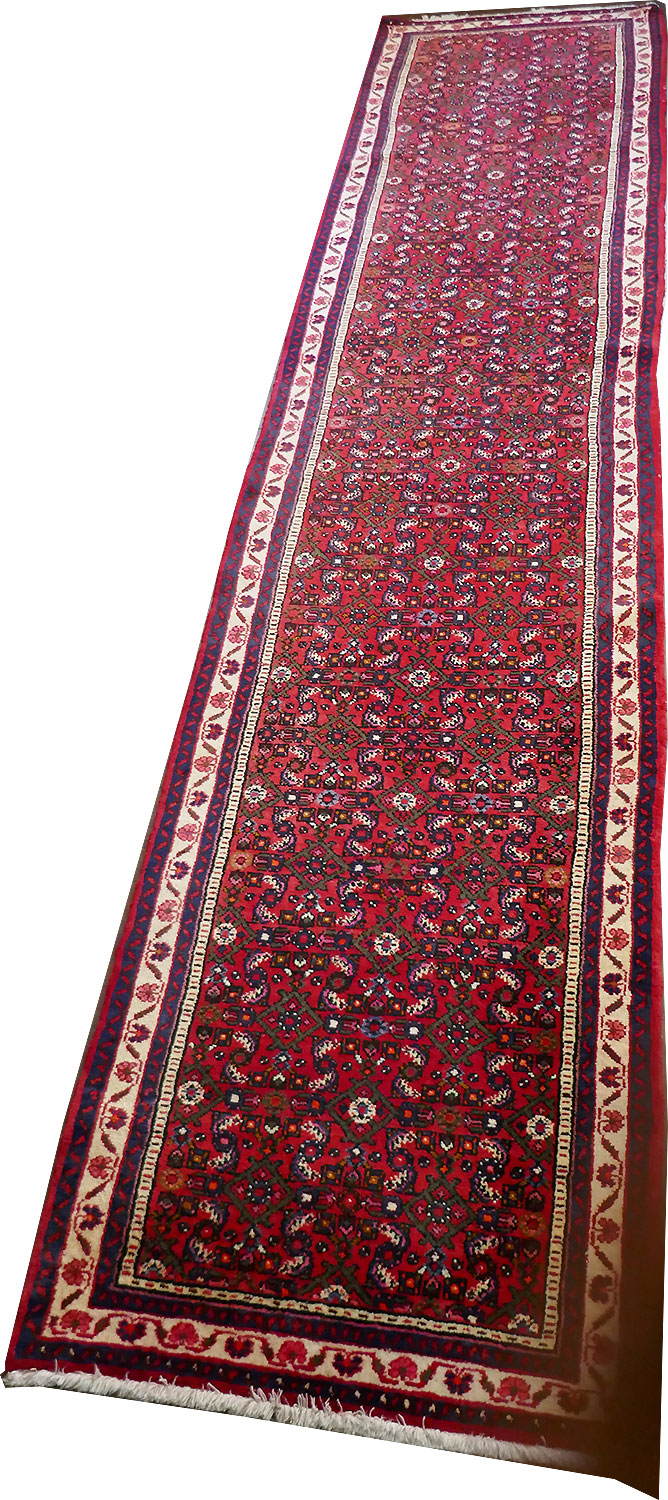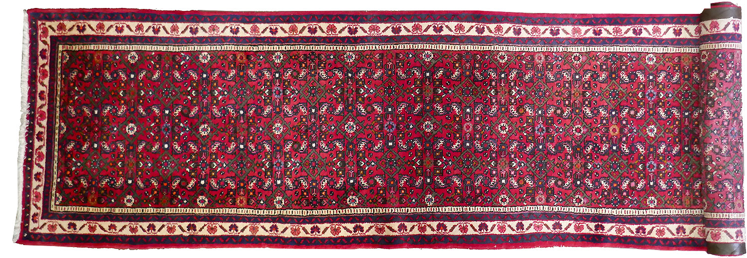 Dimensions : 390 x 89 cm -laine- Pays Iran - Épaisseur : mm - Densité de nouage : Nœuds au m² - Surface : 0 m² - Poids : 0 Kgs - Age : - Confection : - Forme : - Type :
