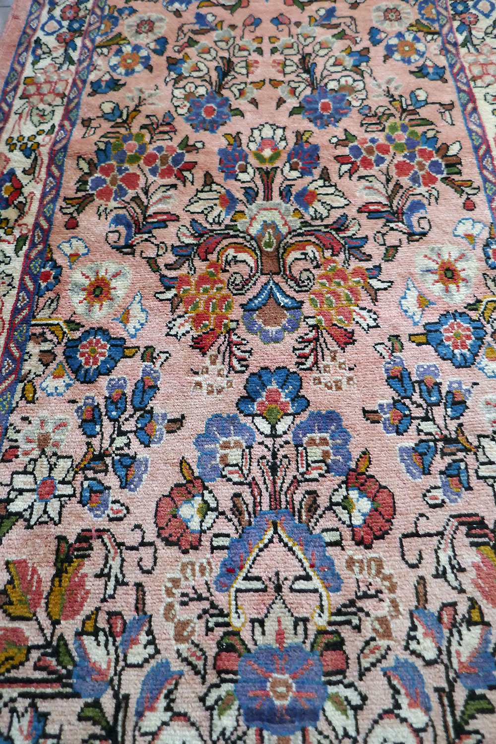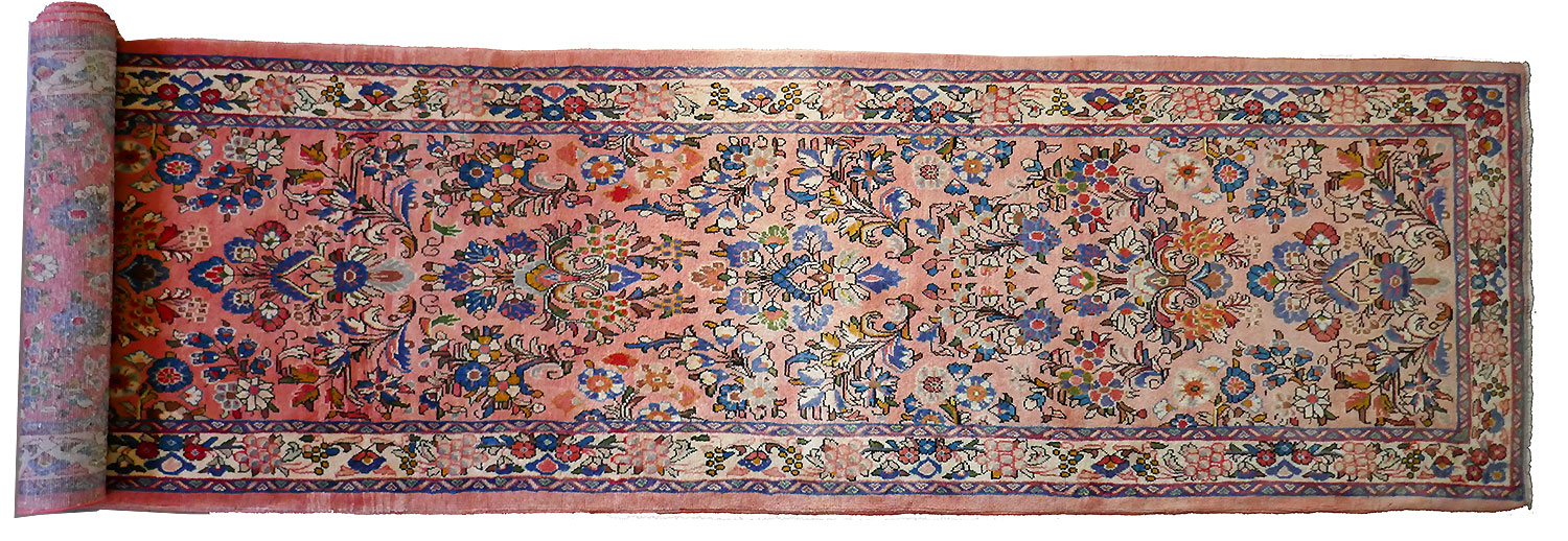 Dimensions : 378 x 72 cm -laine- Pays Iran - Épaisseur : 10 mm - Densité de nouage : 400.000 Nœuds au m² - Surface : 2.72 m² - Poids : 8.16 Kgs - Age : contemporain - Confection : Noué main - Forme : Tapis de couloirs - Type : Tapis persan