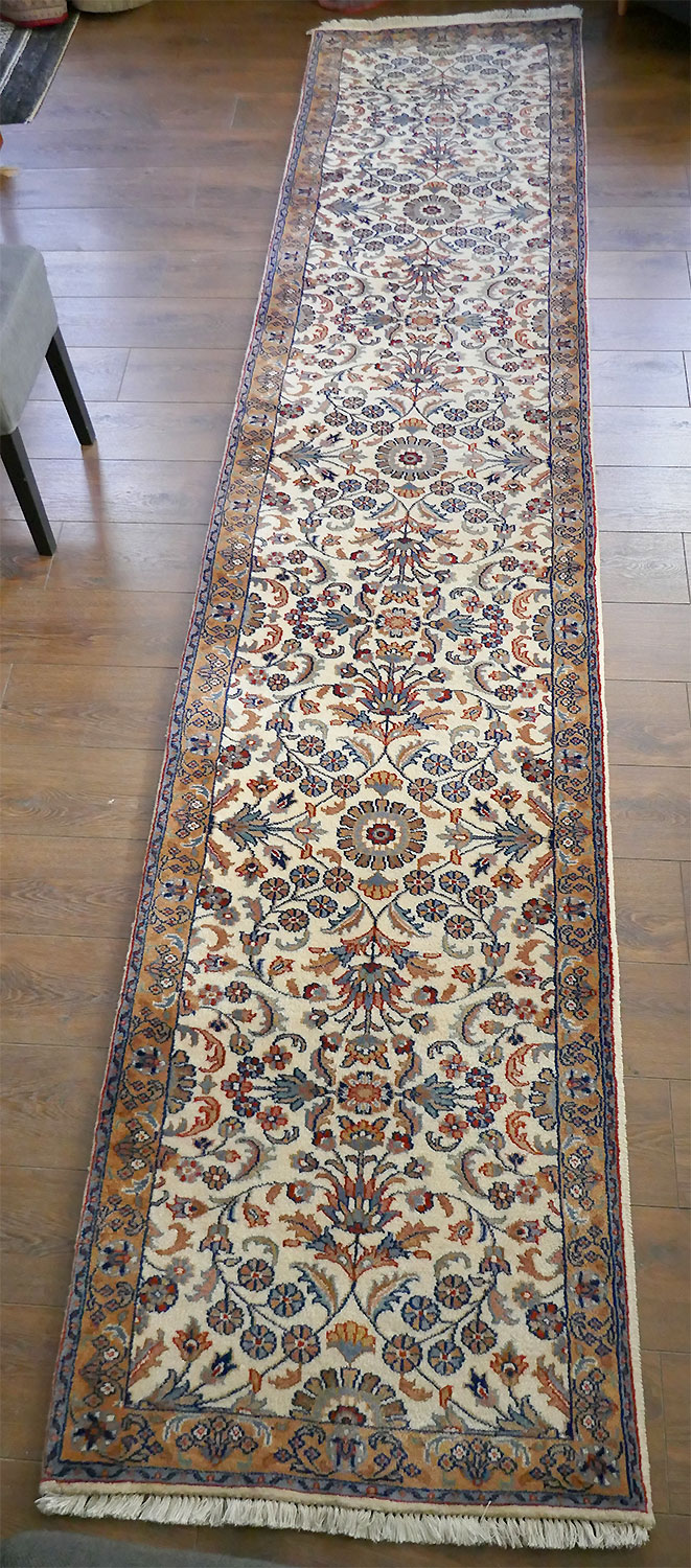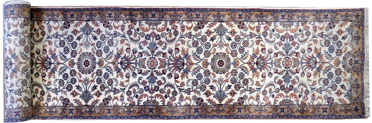 Dimensions : 395 x 85 cm -laine- Pays Iran - Épaisseur : 10 mm - Densité de nouage : 400.000 Nœuds au m² - Surface : 3.36 m² - Poids : 10.07 Kgs - Age : contemporain - Confection : Noué main - Forme : Tapis de couloirs - Type : Tapis persan