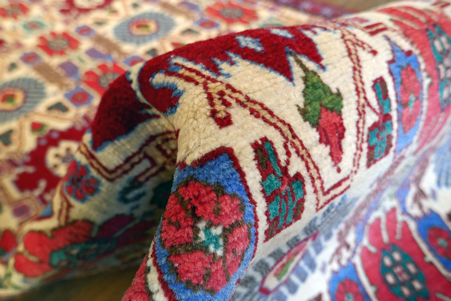 Dimensions : 390 x 78 cm -laine et soie- Pays Iran - Épaisseur : mm - Densité de nouage : Nœuds au m² - Surface : 0 m² - Poids : 0 Kgs - Age : - Confection : - Forme : - Type :
