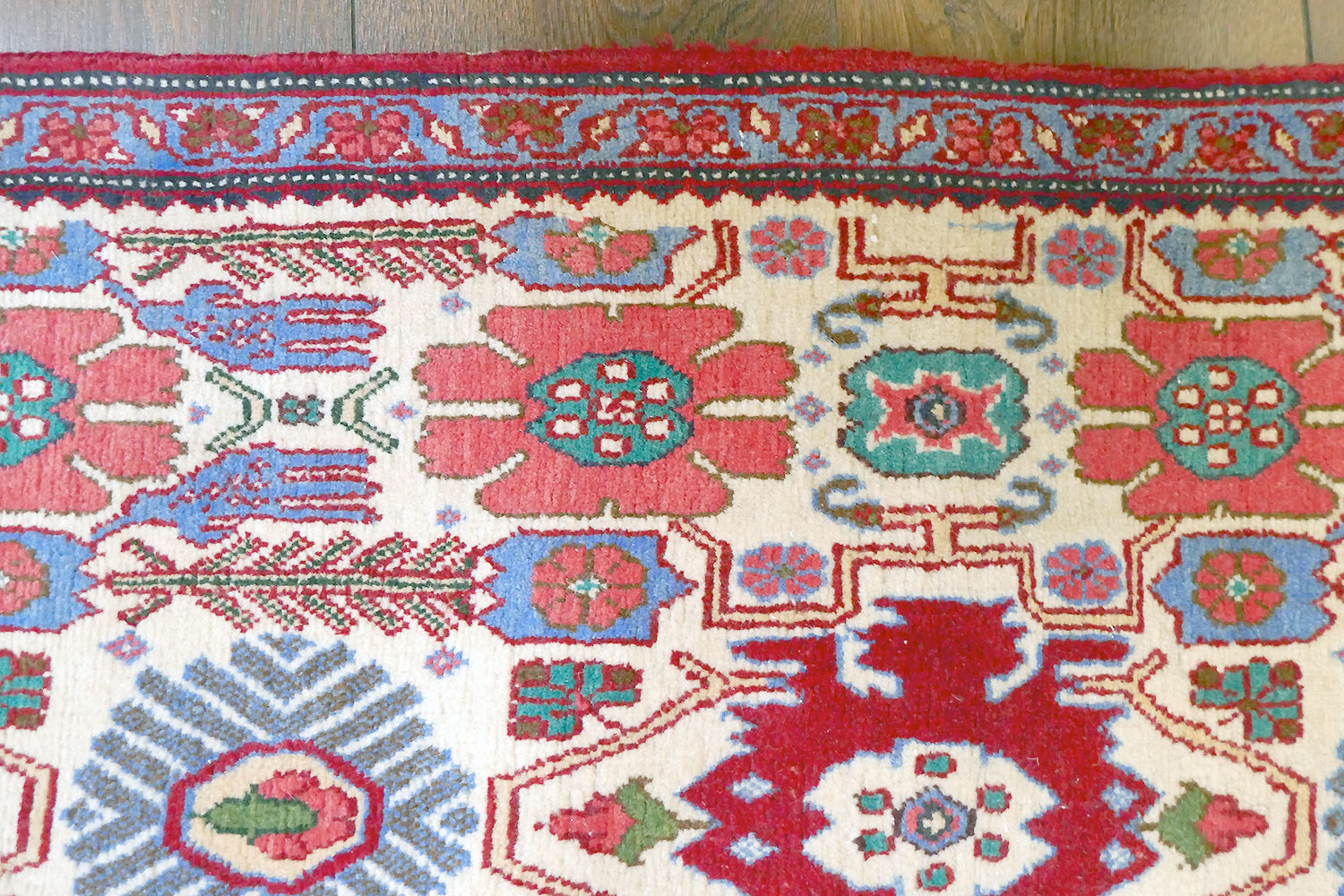 Dimensions : 395 x 85 cm -laine- Pays Iran - Épaisseur : mm - Densité de nouage : Nœuds au m² - Surface : 0 m² - Poids : 0 Kgs - Age : - Confection : - Forme : - Type :
