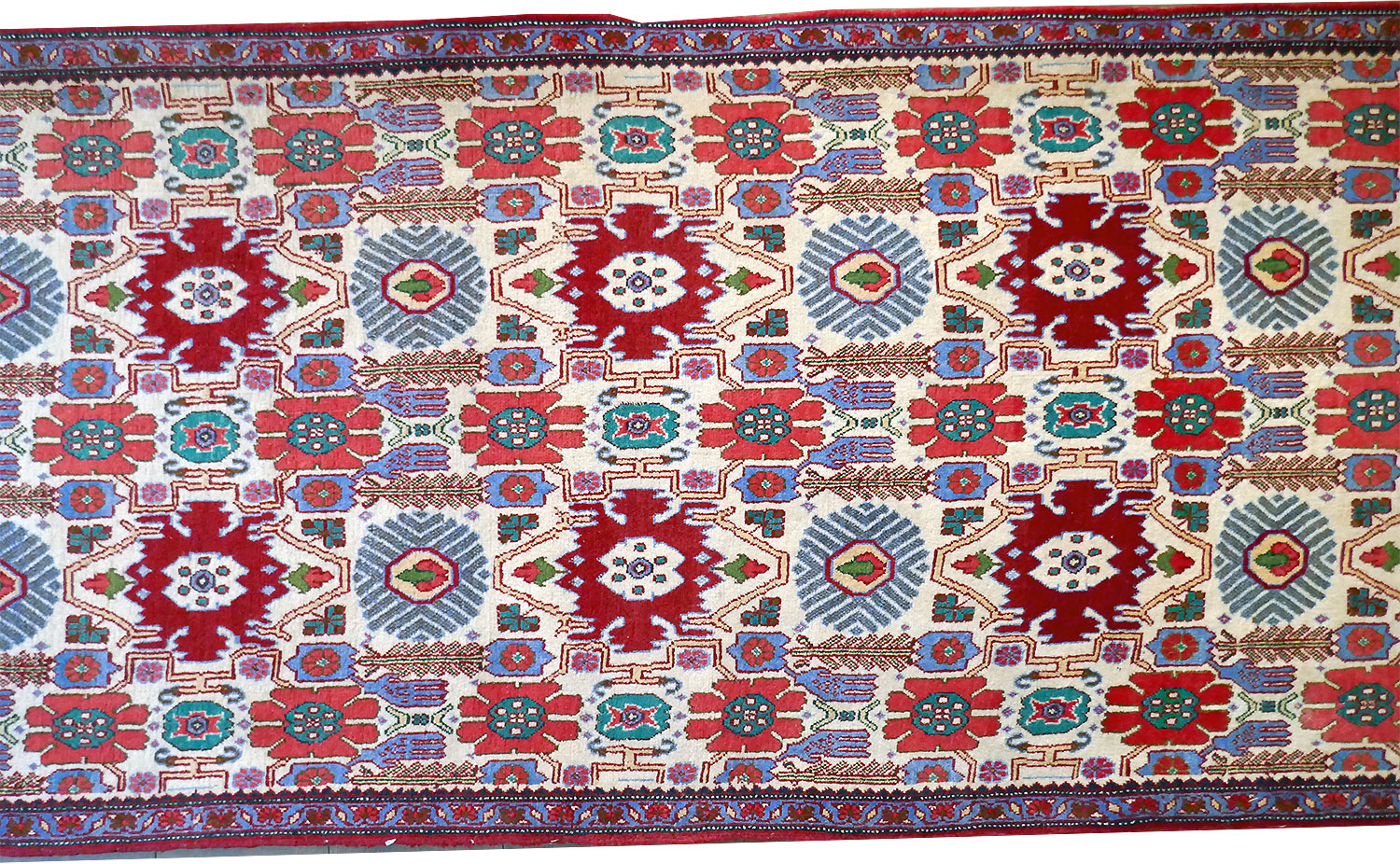 Dimensions : 420 x 81 cm -laine- Pays Afghanistan - Épaisseur : mm - Densité de nouage : Nœuds au m² - Surface : 0 m² - Poids : 0 Kgs - Age : - Confection : - Forme : - Type :