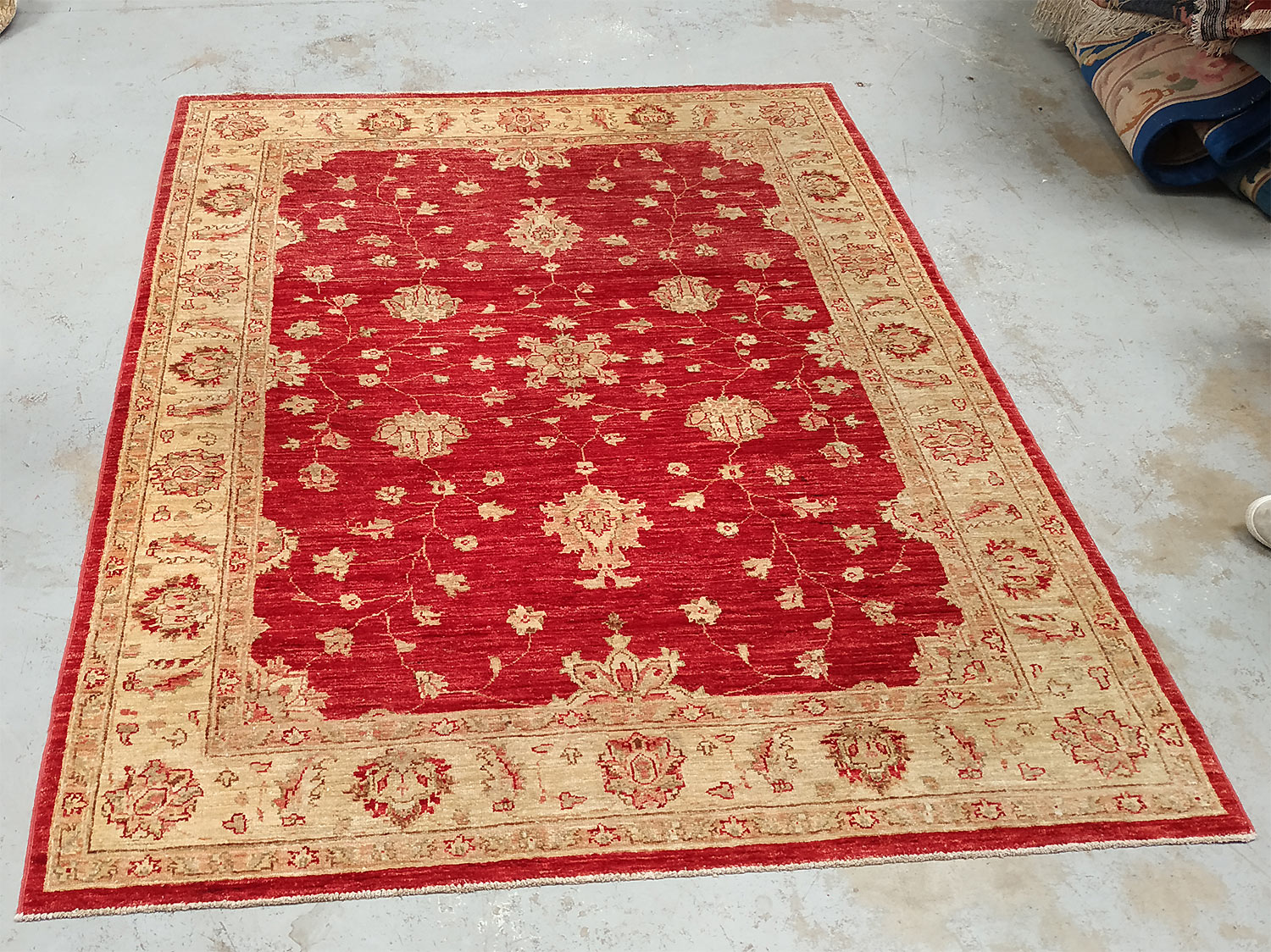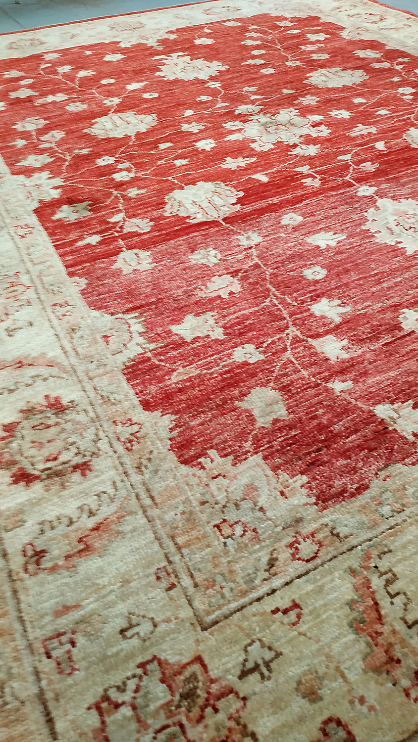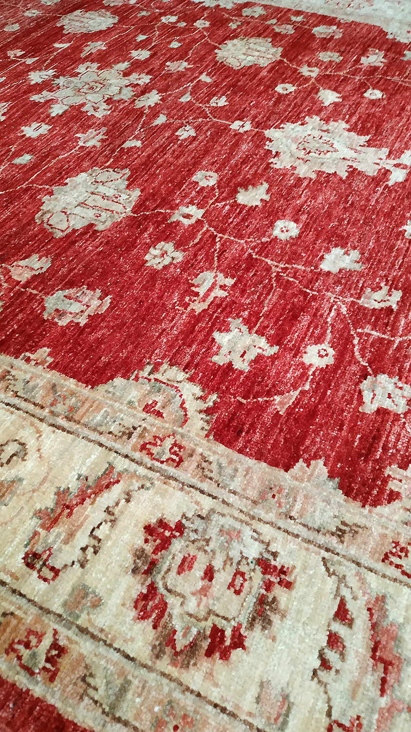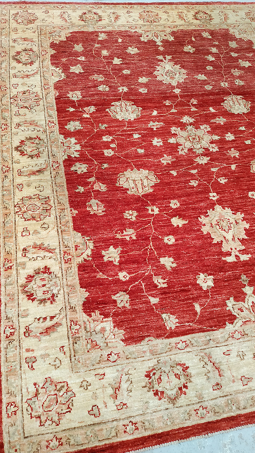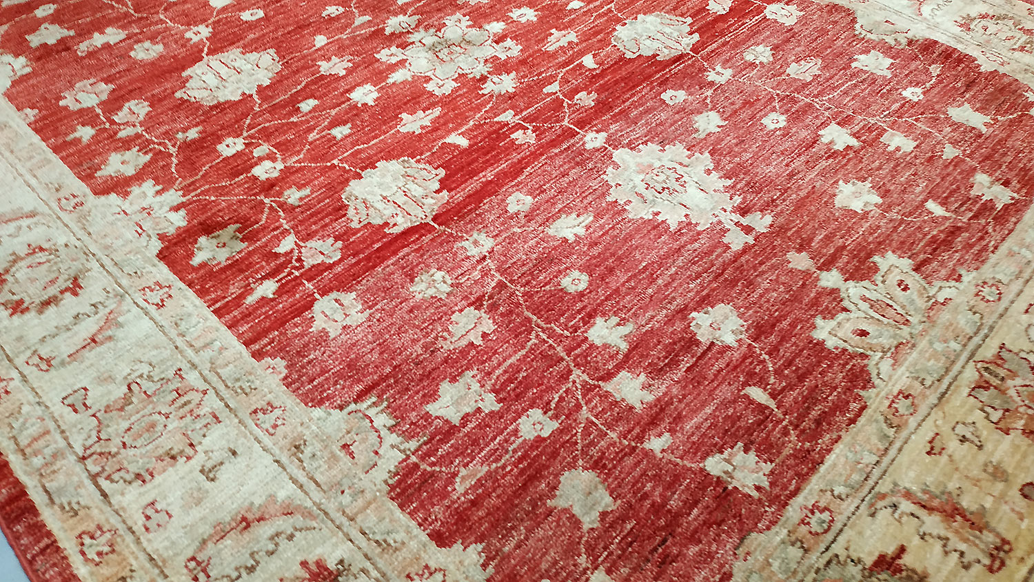 Dimensions : 215 x 146 cm -laine- Pays Afghanistan - Épaisseur : 9 mm - Densité de nouage : 200.000 Nœuds au m² - Surface : 3.14 m² - Poids : 9.42 Kgs - Age : contemporain - Confection : Noué main - Forme : Tapis de chambre - Type : Tapis Oriental