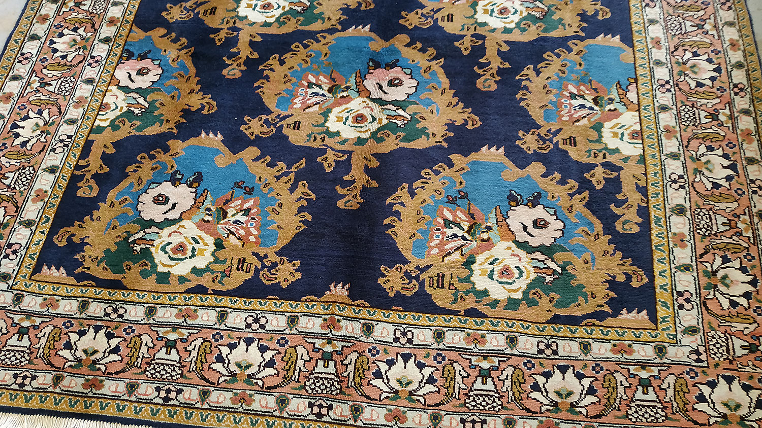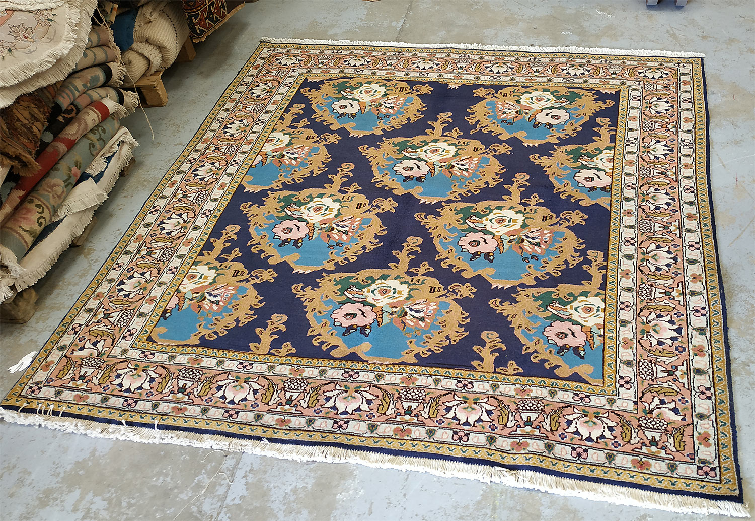 Dimensions : 186 x 173 cm -laine- Pays Iran - Épaisseur : mm - Densité de nouage : Nœuds au m² - Surface : 0 m² - Poids : 0 Kgs - Age : - Confection : - Forme : - Type :