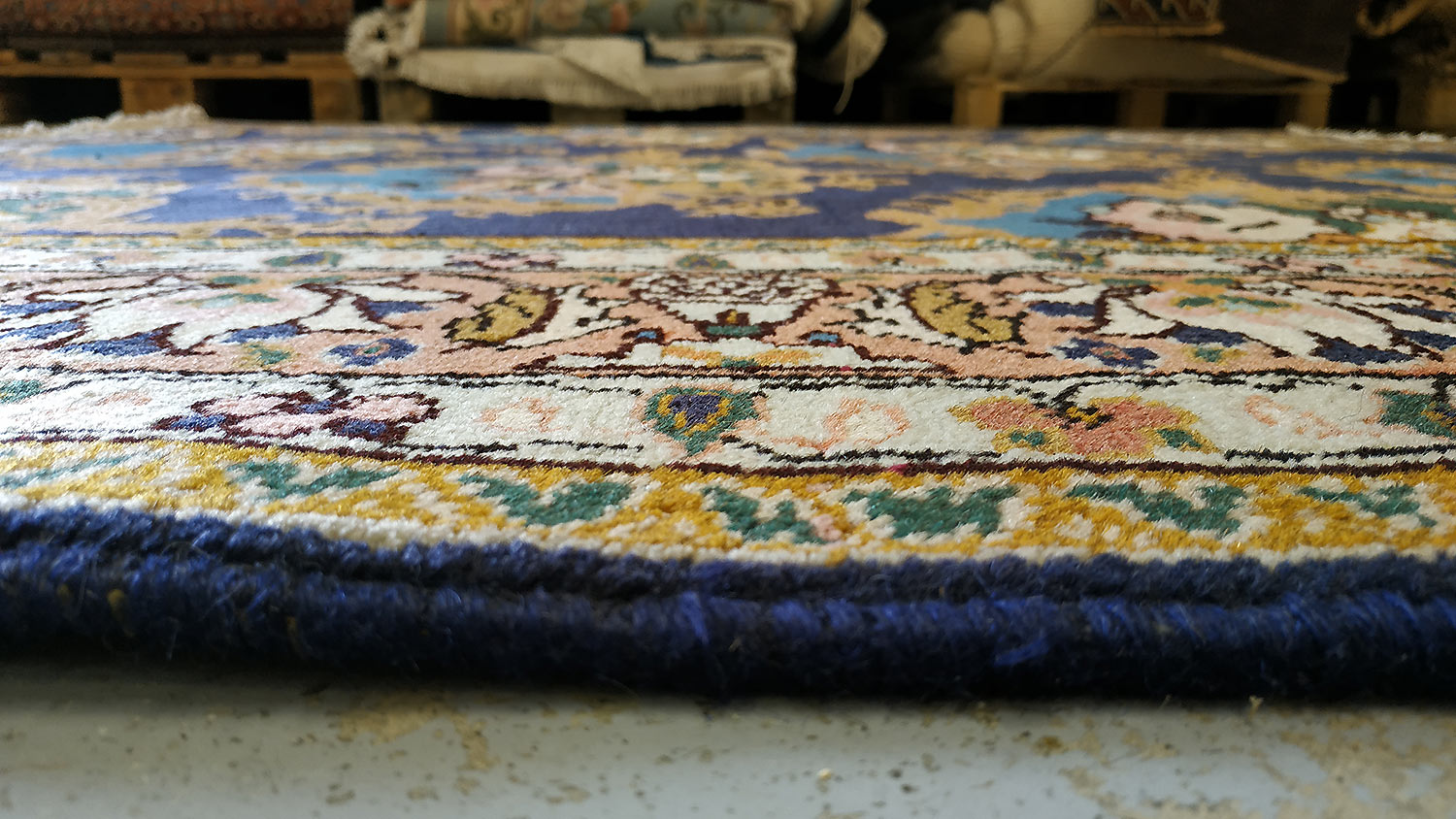 Dimensions : 184 x 180 cm -soie- Pays Inde - Épaisseur : mm - Densité de nouage : Nœuds au m² - Surface : 0 m² - Poids : 0 Kgs - Age : - Confection : - Forme : - Type :