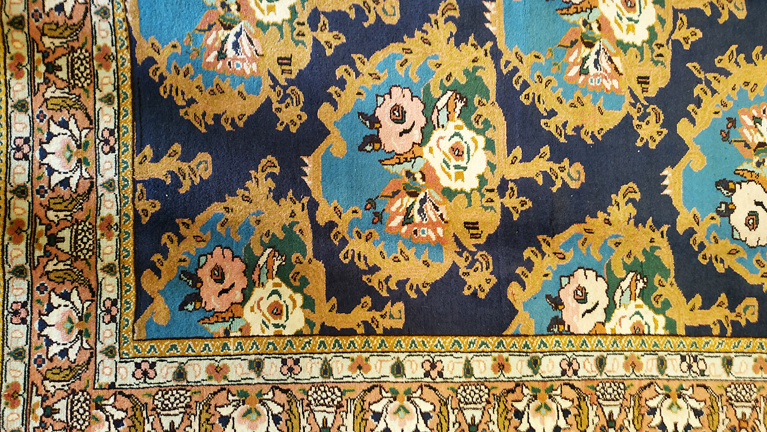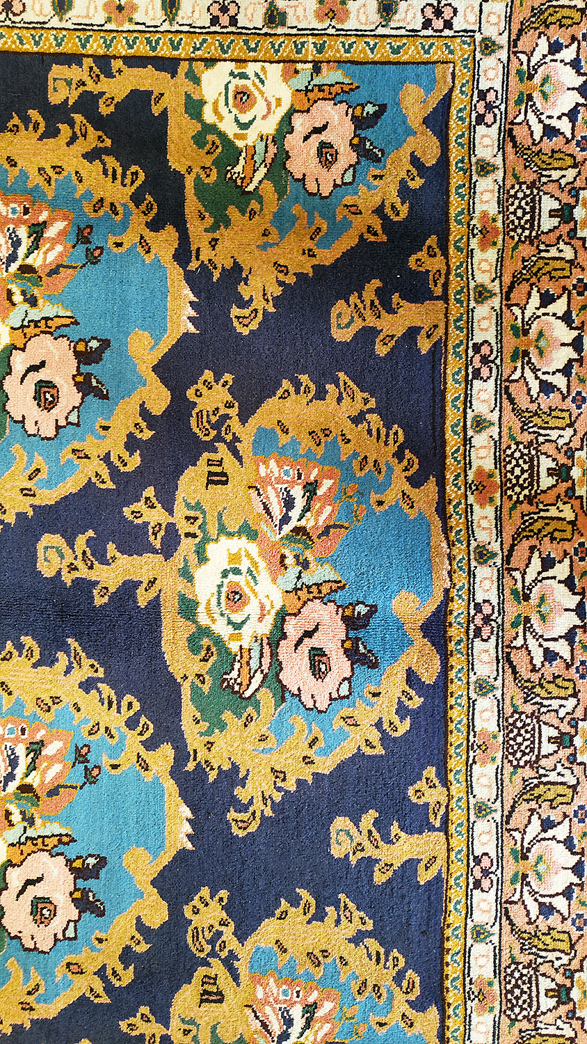 Dimensions : 208 x 200 cm -laine- Pays Iran - Épaisseur : mm - Densité de nouage : Nœuds au m² - Surface : 0 m² - Poids : 0 Kgs - Age : - Confection : - Forme : - Type :