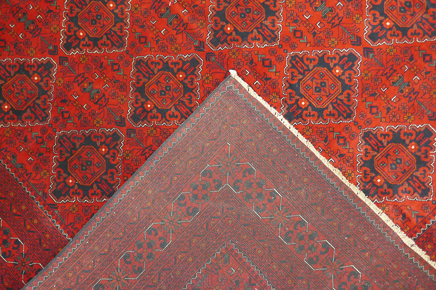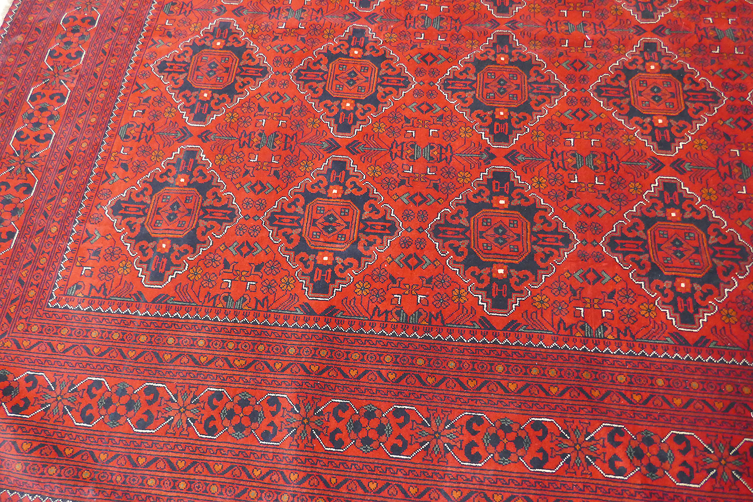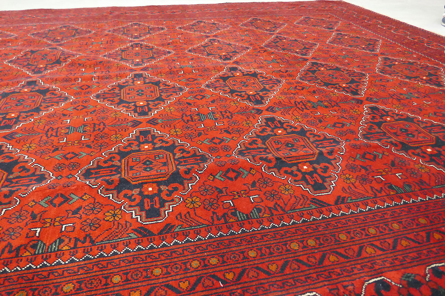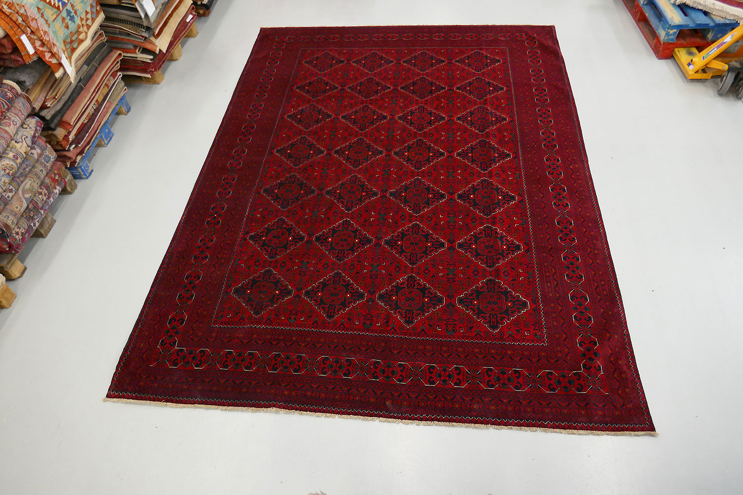 Dimensions : 357 x 277 cm -laine- Pays Afghanistan - Épaisseur : mm - Densité de nouage : Nœuds au m² - Surface : 0 m² - Poids : 0 Kgs - Age : - Confection : - Forme : - Type :
