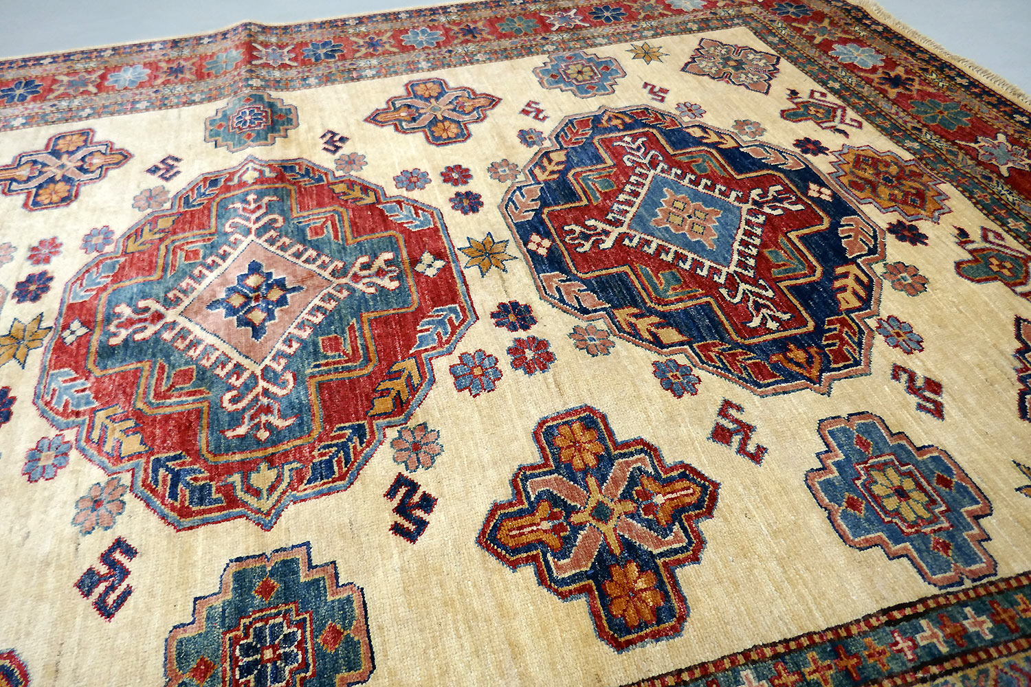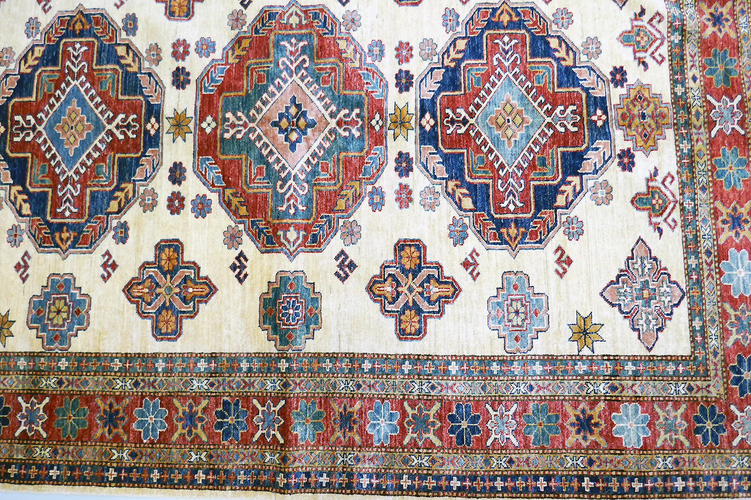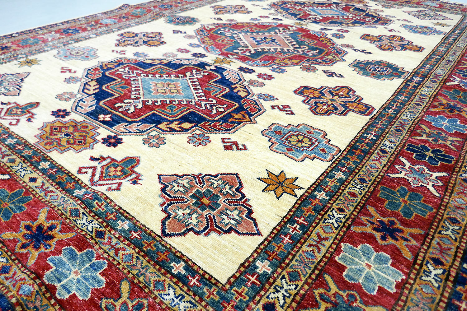 Dimensions : 254 x 174 cm -laine- Pays Afghanistan - Épaisseur : 8 mm - Densité de nouage : 300.000 Nœuds au m² - Surface : 4.42 m² - Poids : 13.26 Kgs - Age : contemporain - Confection : Noué main - Forme : Tapis de salon - Type : Tapis Oriental