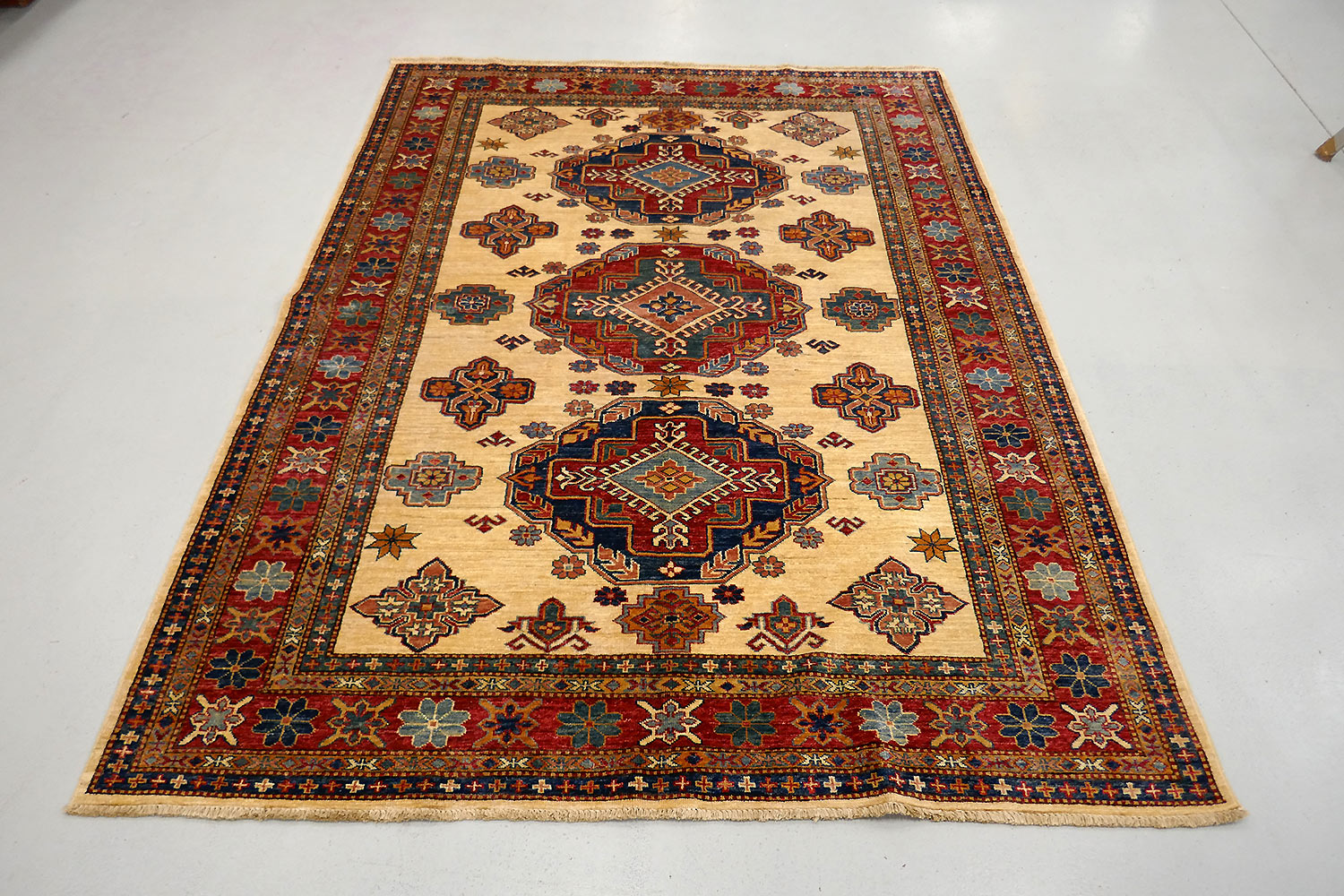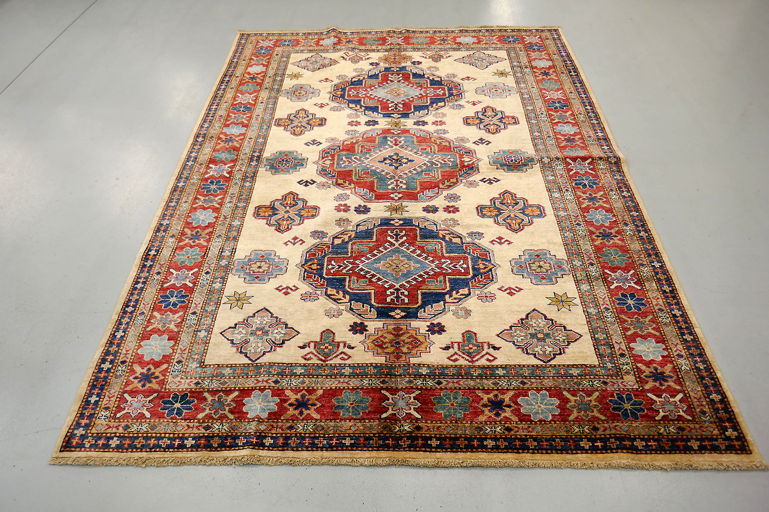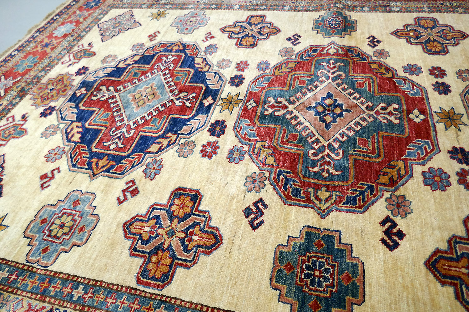 Dimensions : 254 x 174 cm -laine- Pays Afghanistan - Épaisseur : 8 mm - Densité de nouage : 300.000 Nœuds au m² - Surface : 4.42 m² - Poids : 13.26 Kgs - Age : contemporain - Confection : Noué main - Forme : Tapis de salon - Type : Tapis Oriental
