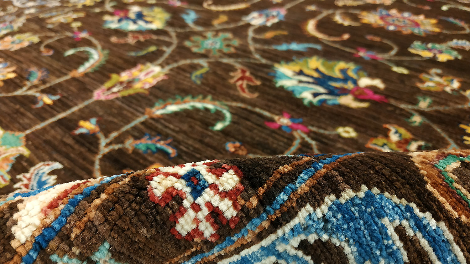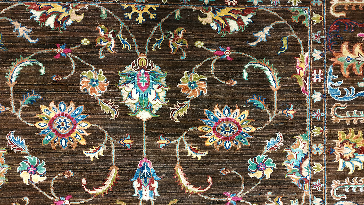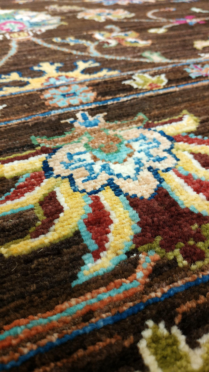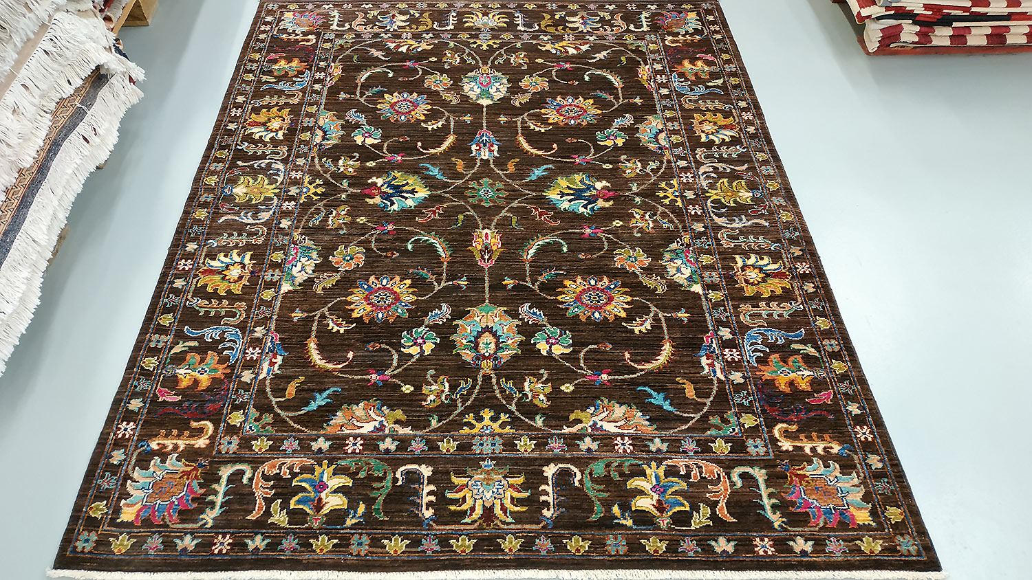 Dimensions : 207 x 150 cm -laine- Pays Afghanistan - Épaisseur : 8 mm - Densité de nouage : 300.000 Nœuds au m² - Surface : 3.11 m² - Poids : 9.32 Kgs - Age : contemporain - Confection : Noué main - Forme : Tapis de chambre - Type : Tapis Oriental