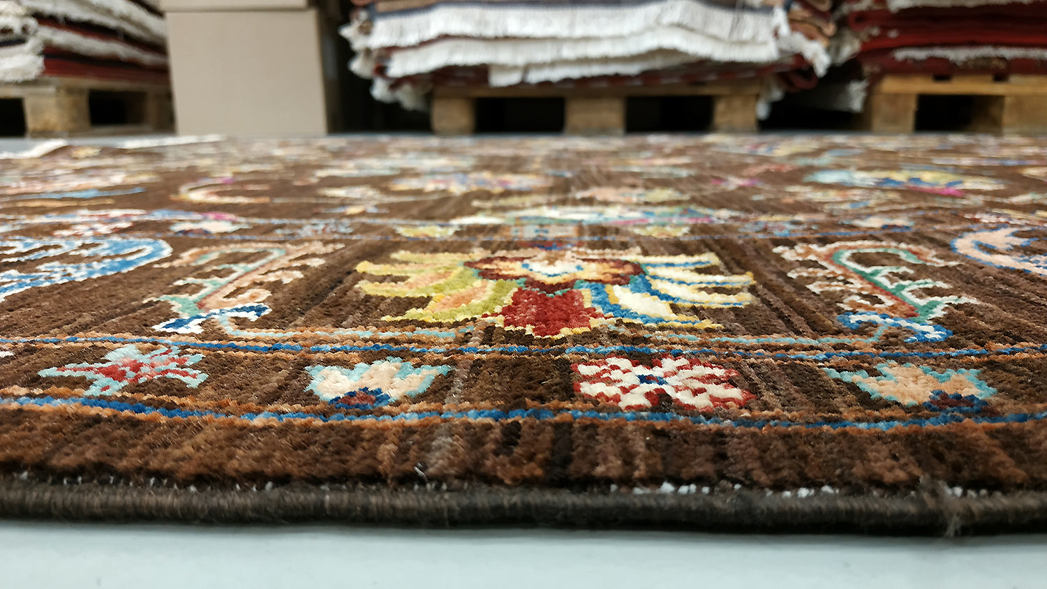 Dimensions : 191 x 148 cm -laine- Pays Afghanistan - Épaisseur : 8 mm - Densité de nouage : 300.000 Nœuds au m² - Surface : 2.83 m² - Poids : 8.48 Kgs - Age : contemporain - Confection : Noué main - Forme : Tapis de chambre - Type : Tapis Oriental