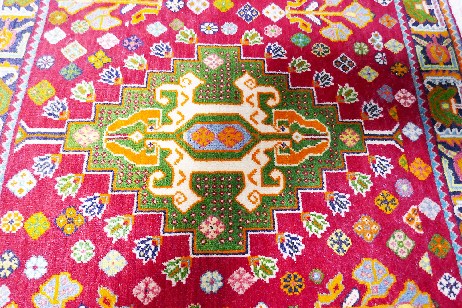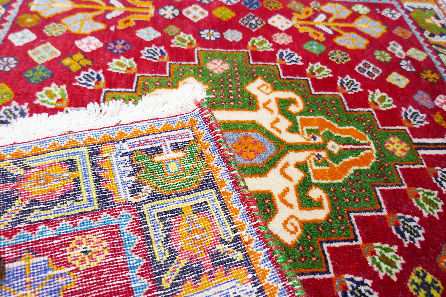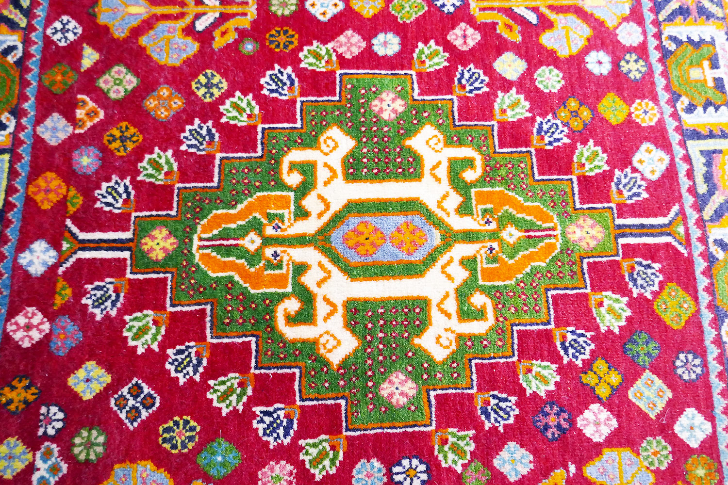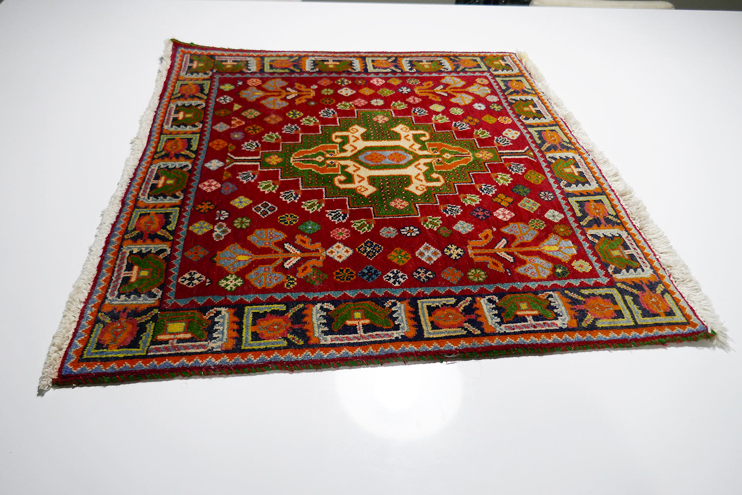 Dimensions : 112 x 105 cm -laine- Pays Iran - Épaisseur : mm - Densité de nouage : Nœuds au m² - Surface : 0 m² - Poids : 0 Kgs - Age : - Confection : - Forme : - Type :