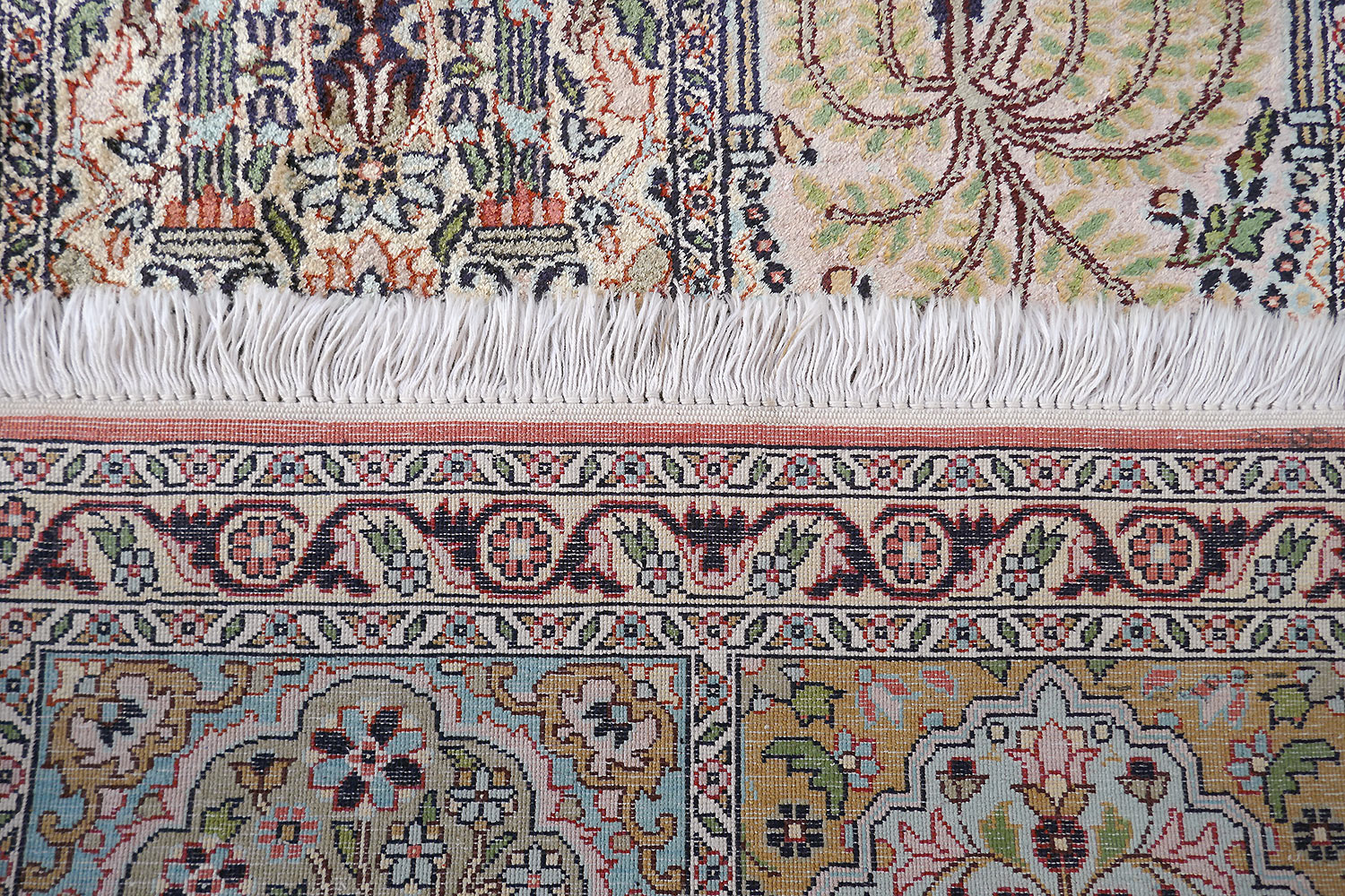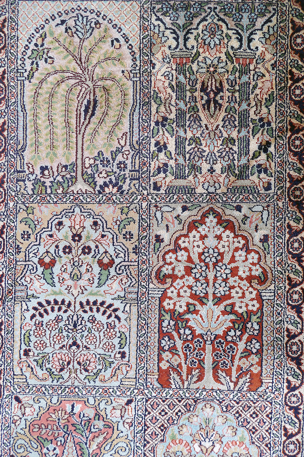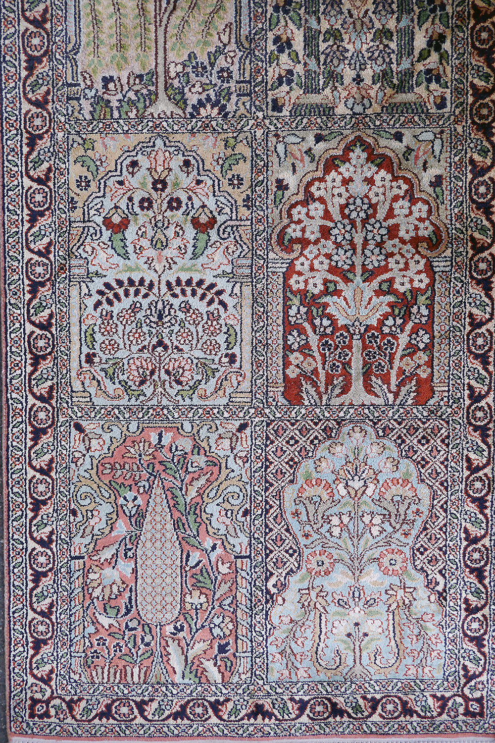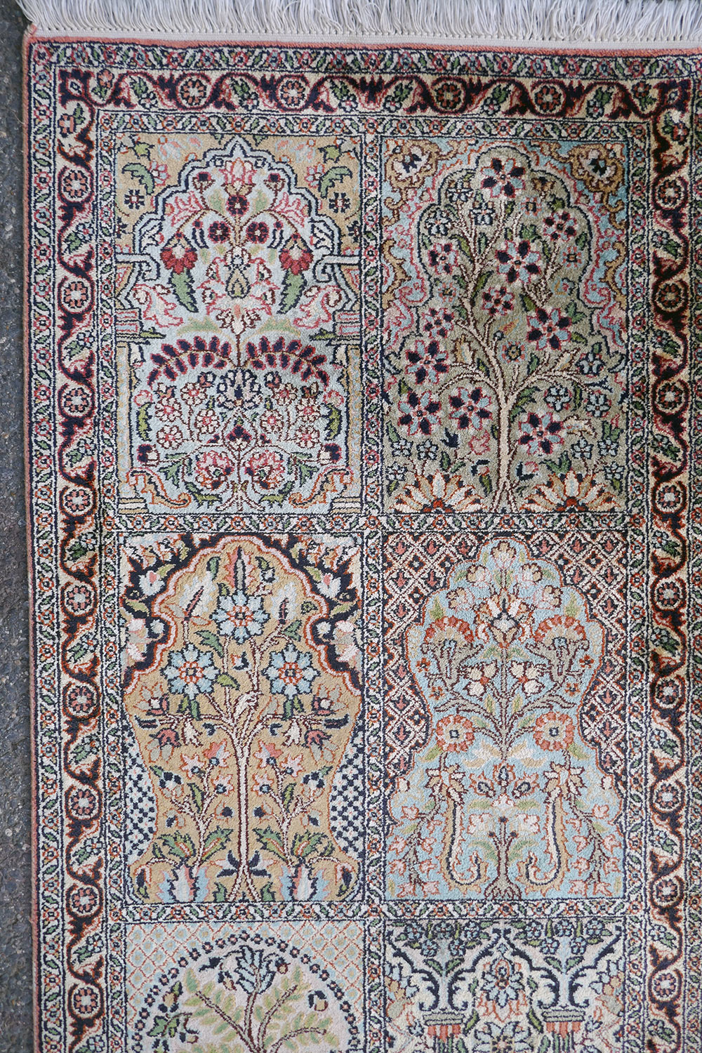 Dimensions : 170 x 65 cm -soie- Pays Inde - Épaisseur : 6 mm - Densité de nouage : 500.000 Nœuds au m² - Surface : 1.11 m² - Poids : 2.21 Kgs - Age : contemporain - Confection : Noué main - Forme : Tapis de couloirs - Type : Tapis Oriental