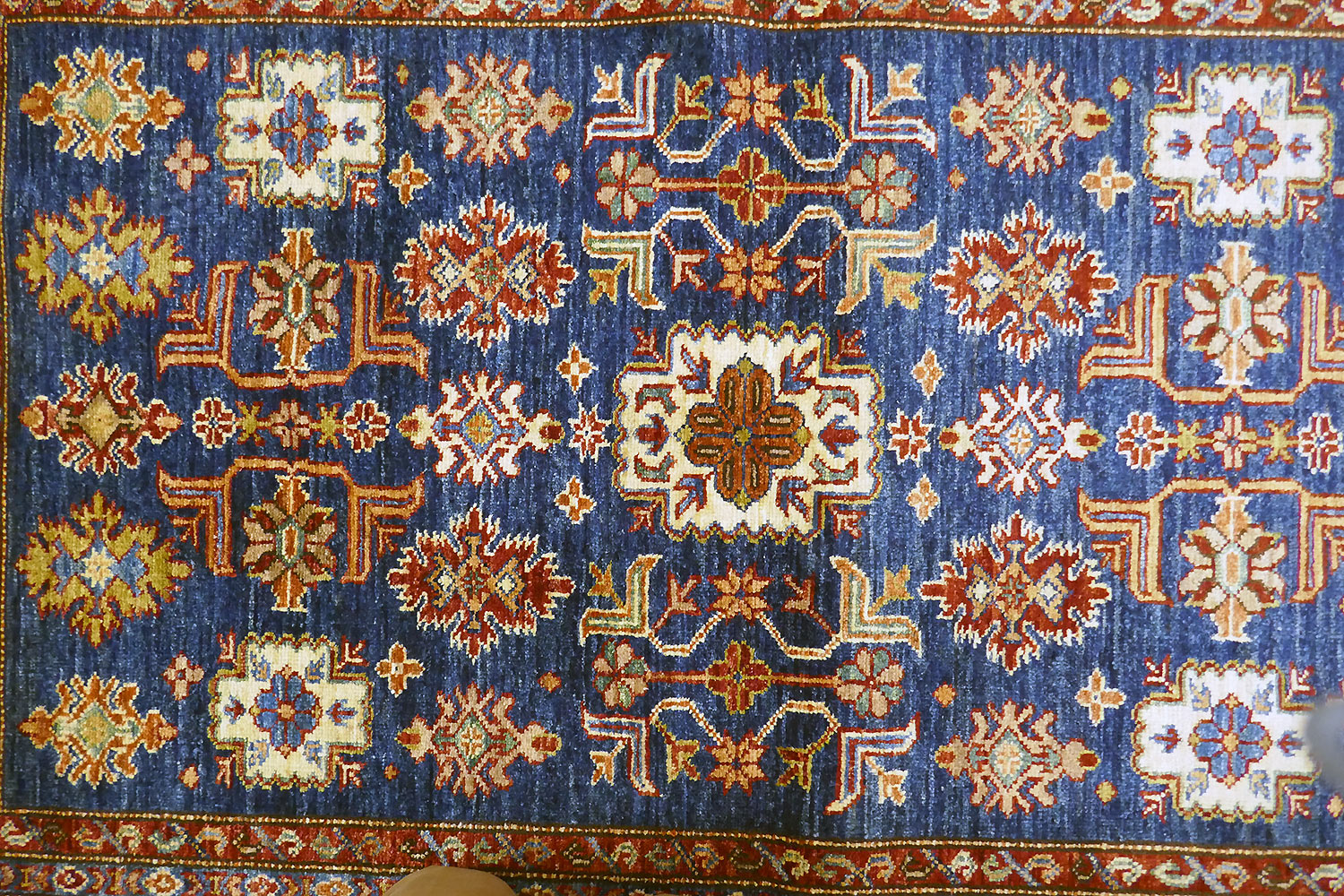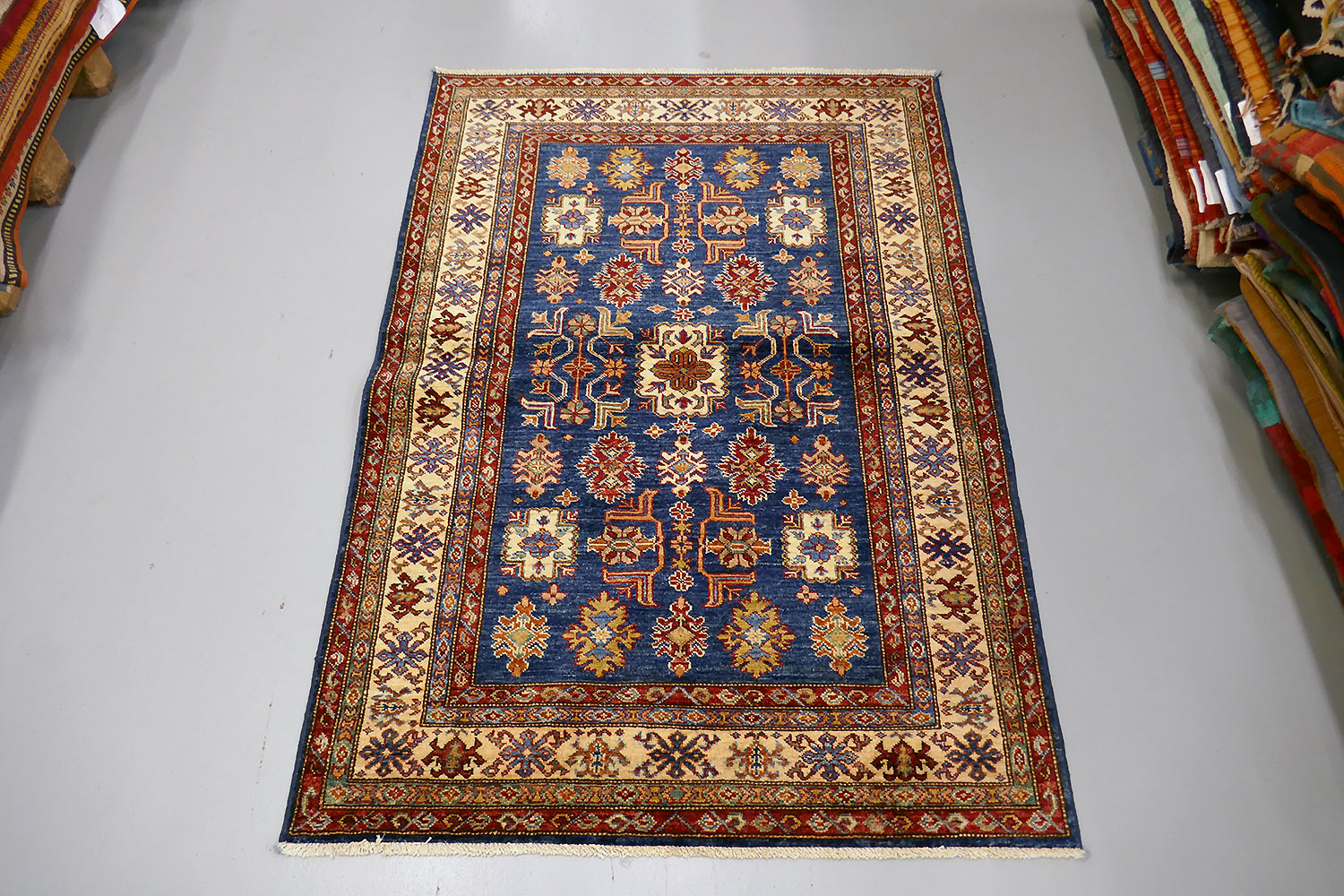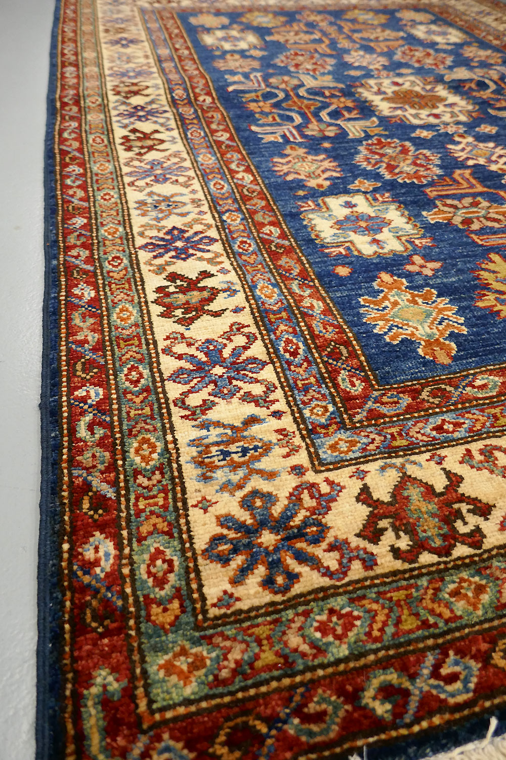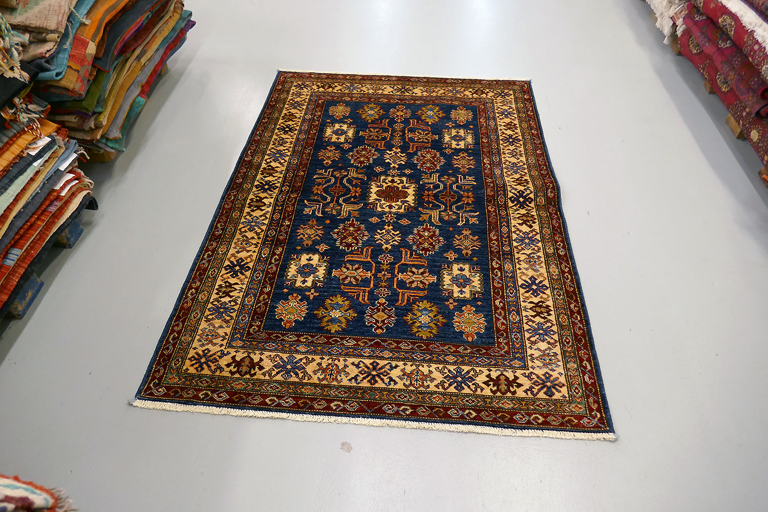 Dimensions : 185 x 120 cm -laine- Pays Afghanistan - Épaisseur : 8 mm - Densité de nouage : 300.000 Nœuds au m² - Surface : 2.22 m² - Poids : 6.66 Kgs - Age : contemporain - Confection : Noué main - Forme : Tapis de chambre - Type : Tapis Oriental