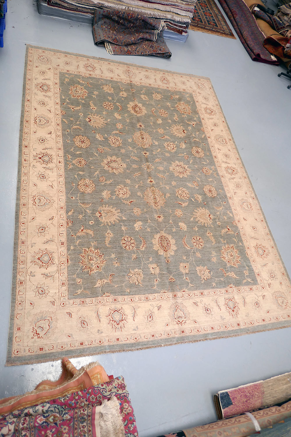 Dimensions : 359 x 272 cm -laine- Pays Afghanistan - Épaisseur : 9 mm - Densité de nouage : 200.000 Nœuds au m² - Surface : 9.76 m² - Poids : 29.29 Kgs - Age : contemporain - Confection : Noué main - Forme : Tapis de salon - Type : Tapis Oriental