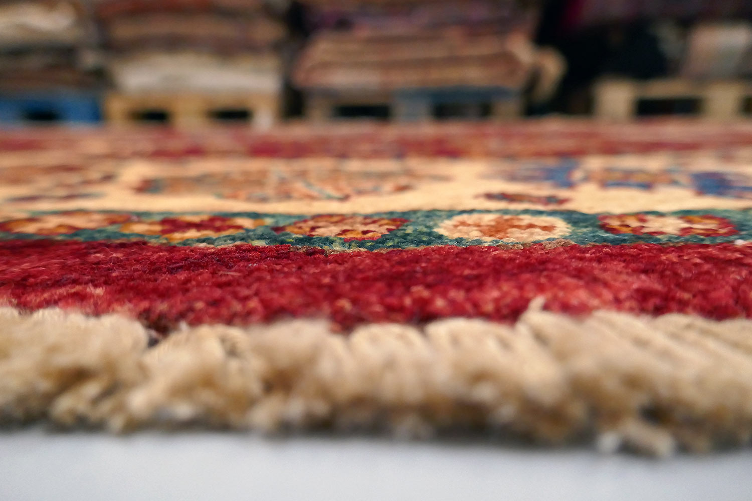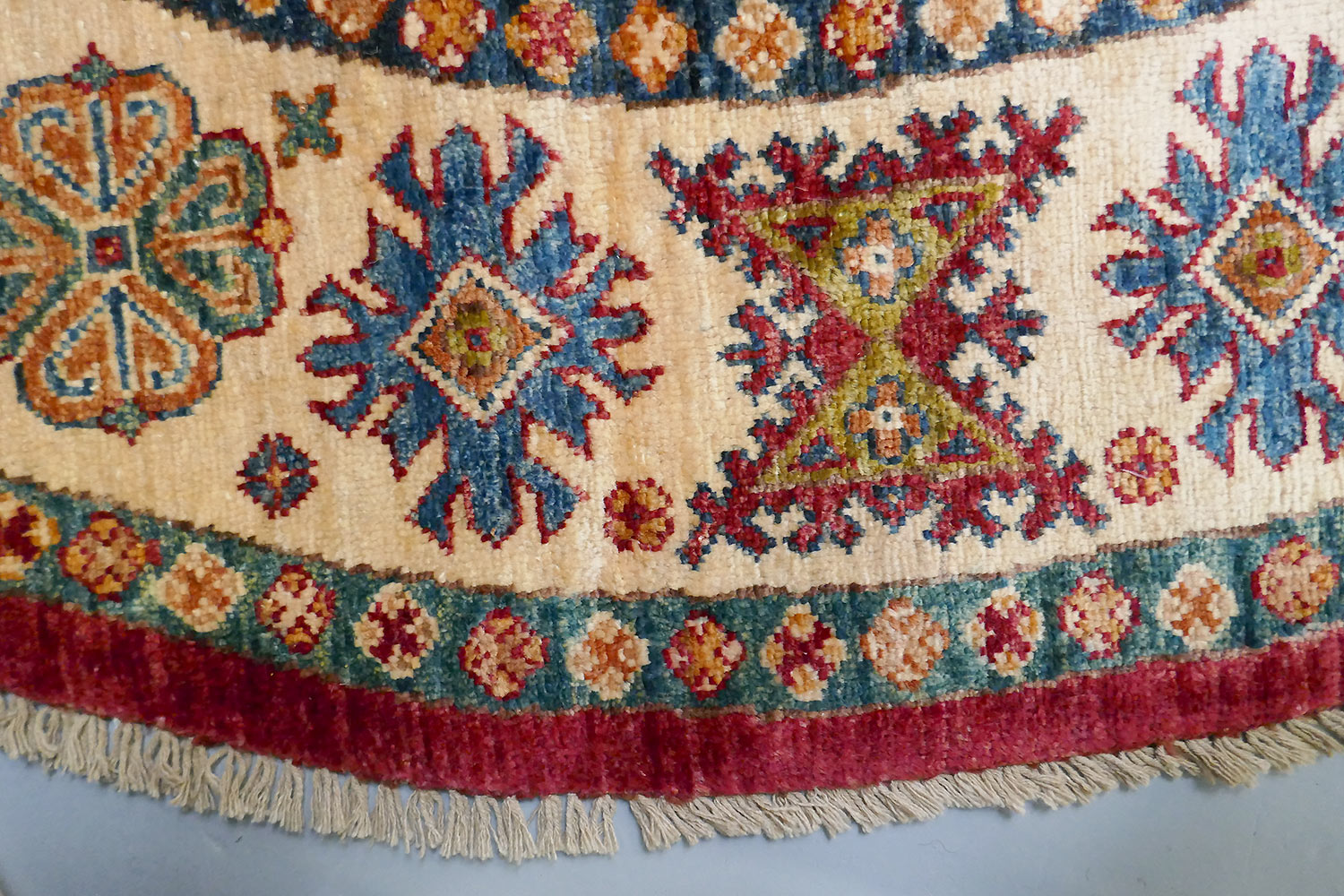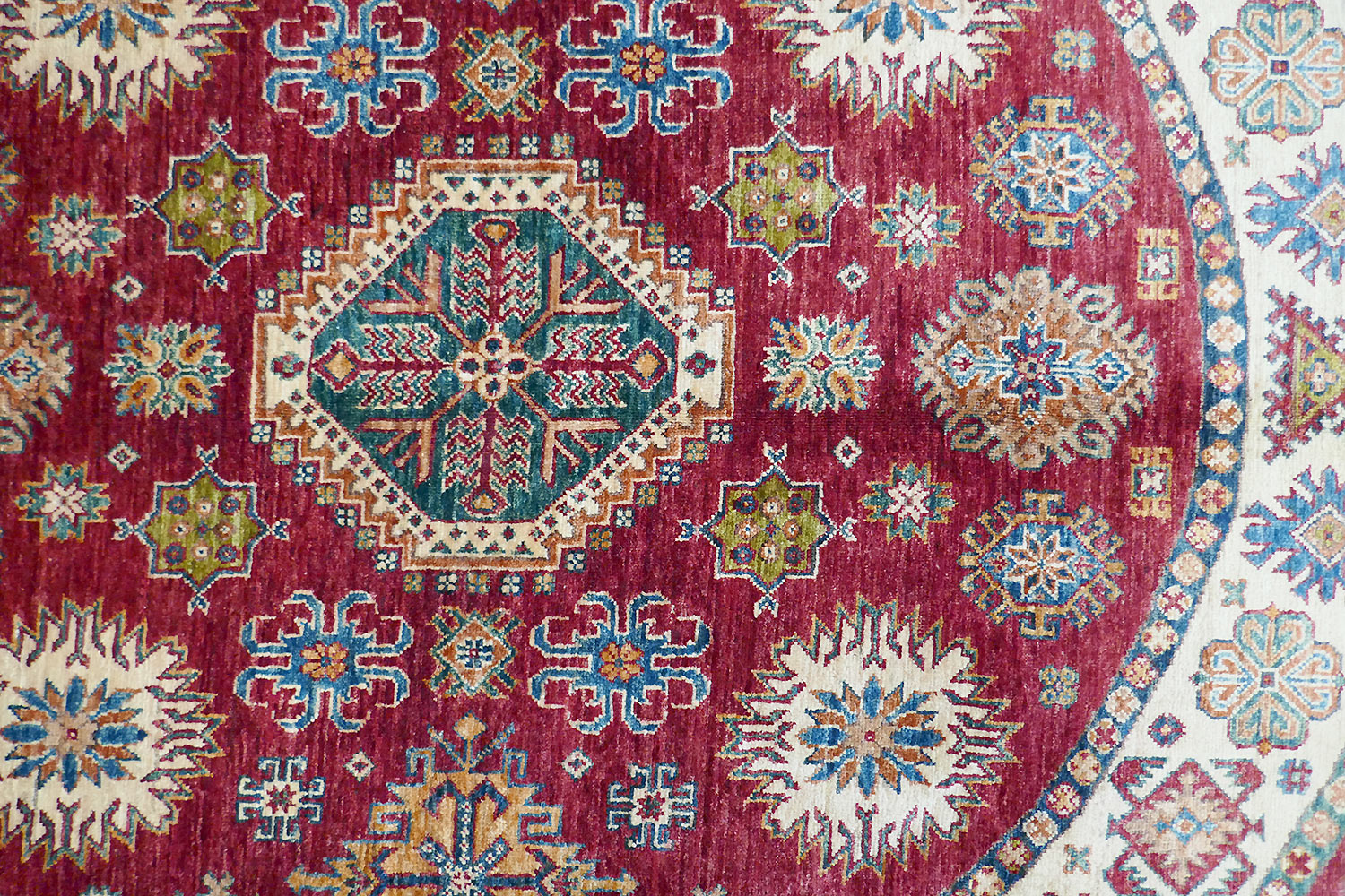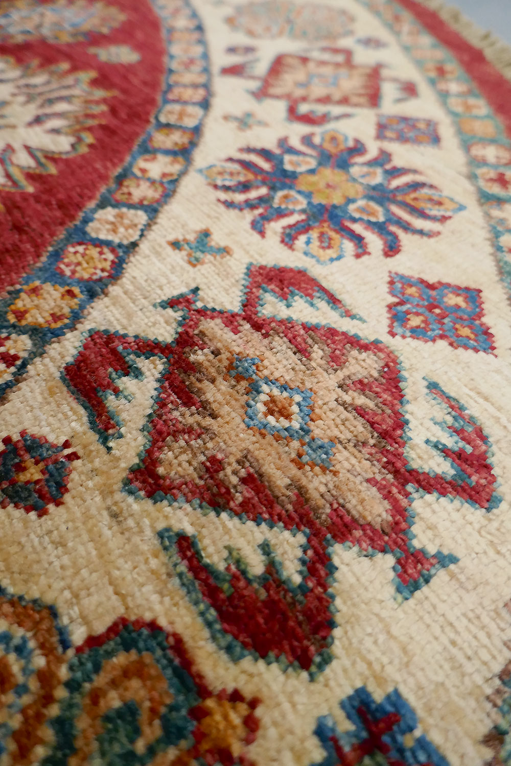 Dimensions : 185 x 185 cm -laine- Pays Afghanistan - Épaisseur : 8 mm - Densité de nouage : 300.000 Nœuds au m² - Surface : 3.42 m² - Poids : 10.27 Kgs - Age : contemporain - Confection : Noué main - Forme : Tapis rond - Type : Tapis Oriental