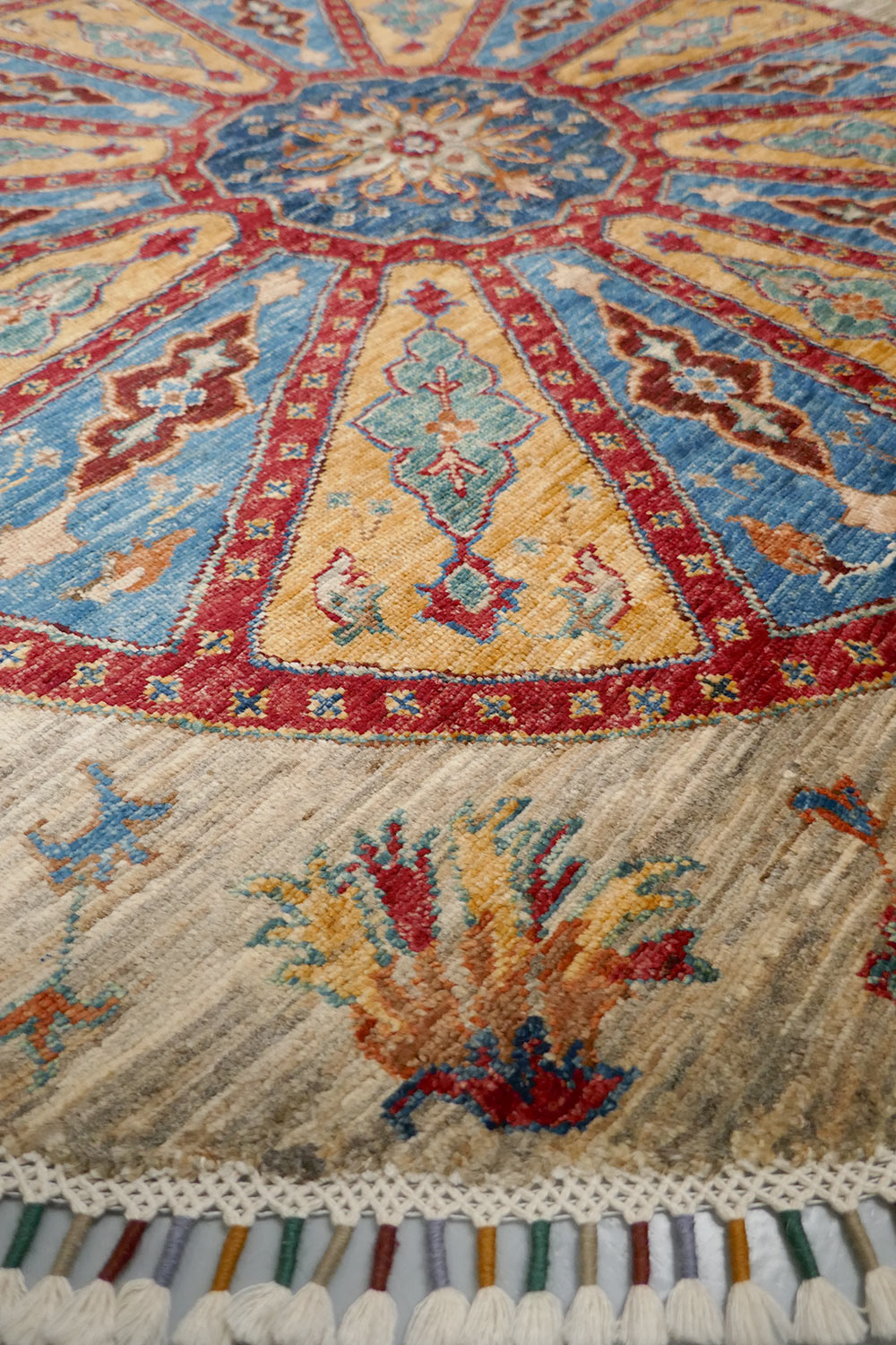 Dimensions : 157 x 157 cm -laine- Pays Afghanistan - Épaisseur : mm - Densité de nouage : Nœuds au m² - Surface : 0 m² - Poids : 0 Kgs - Age : - Confection : - Forme : - Type :