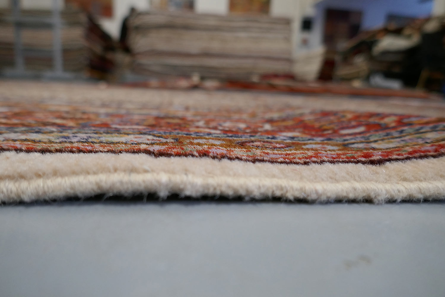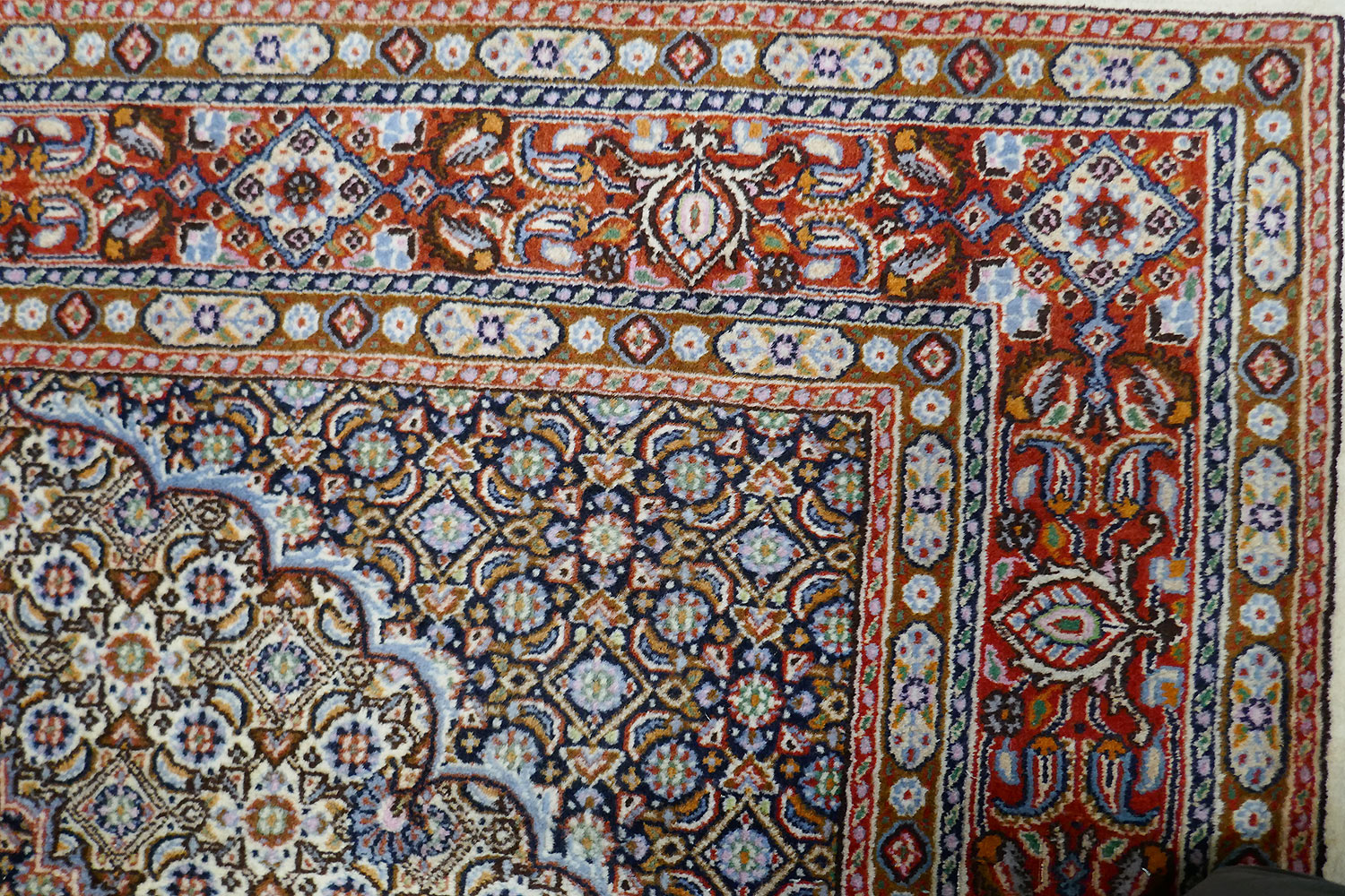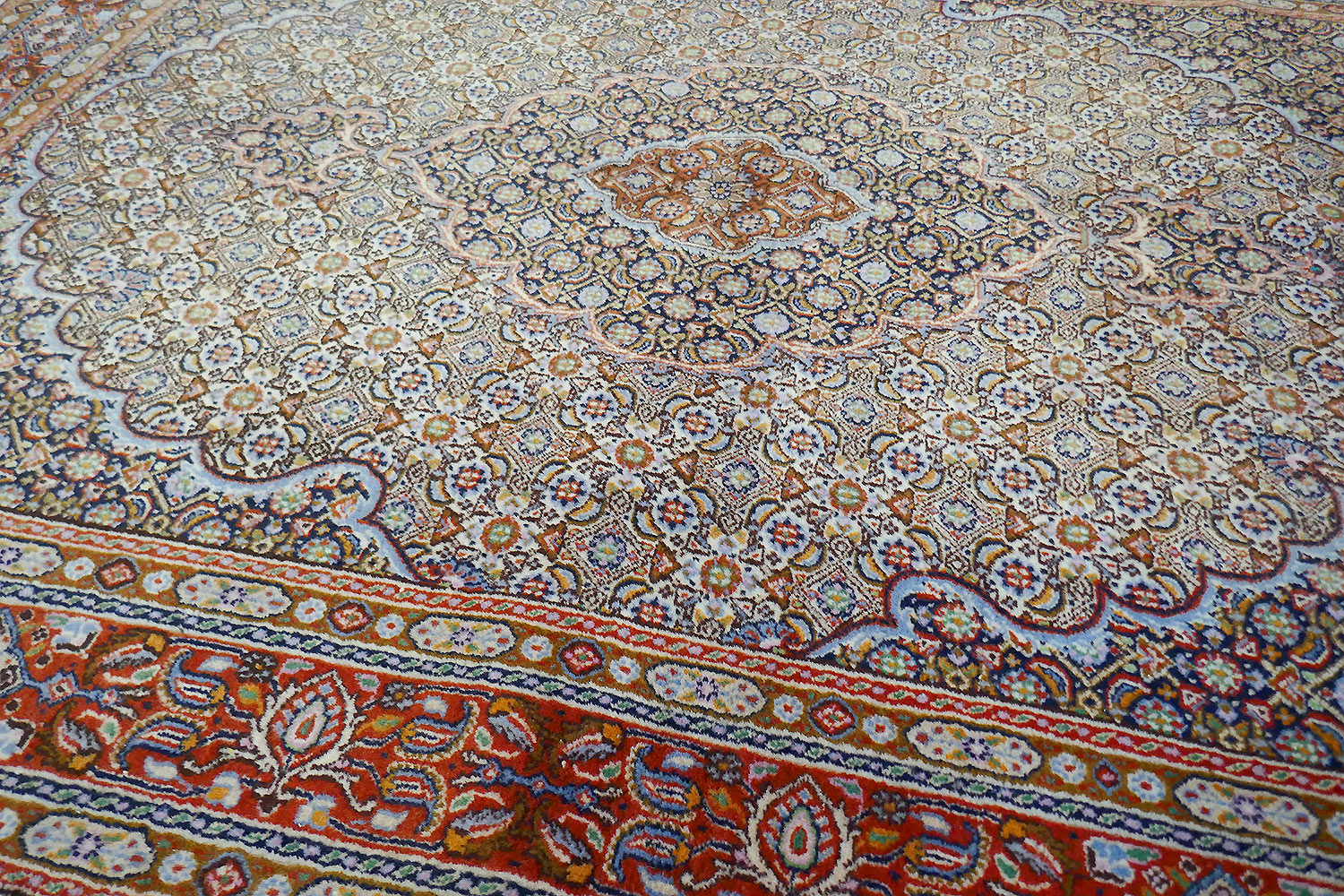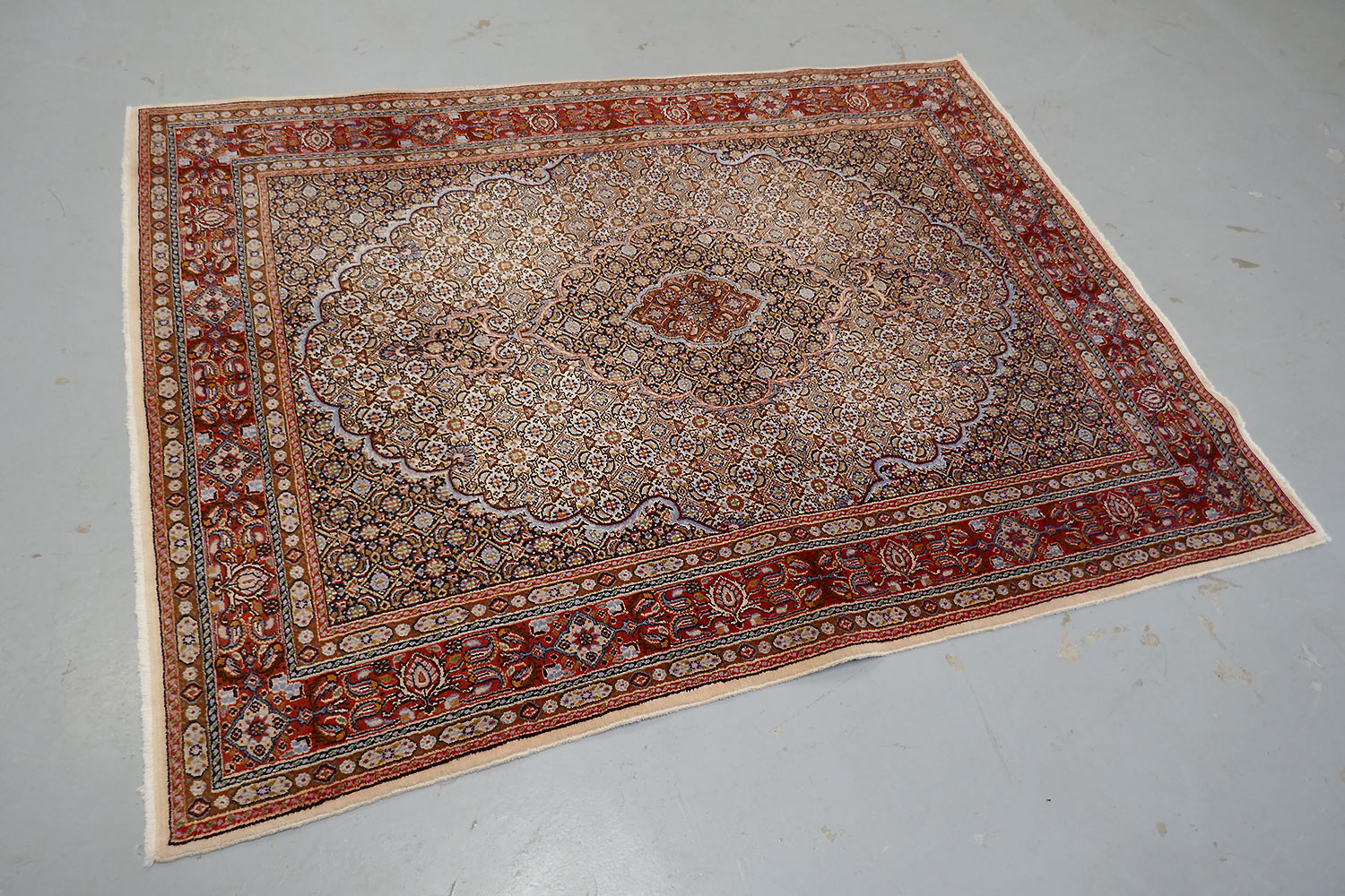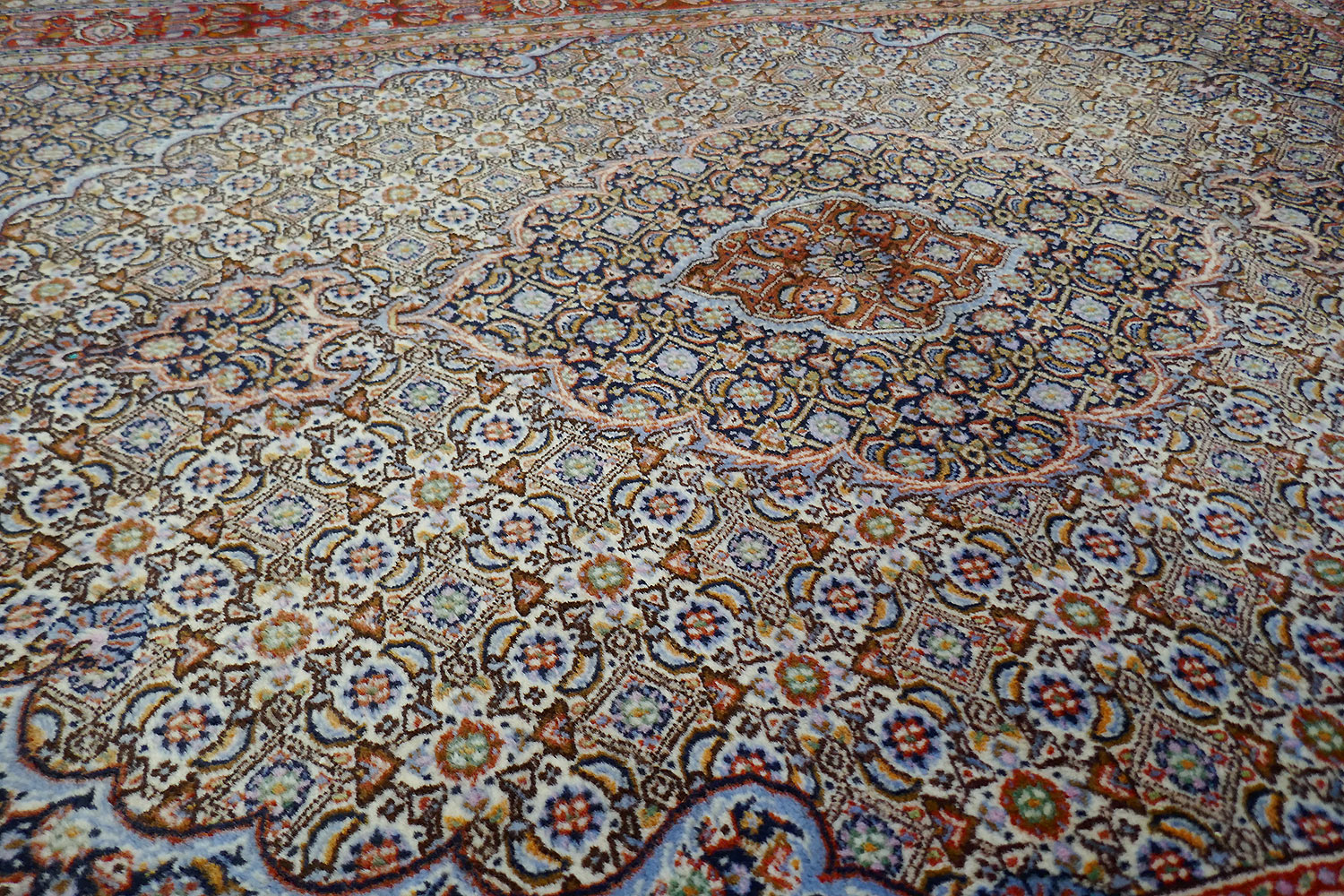 Dimensions : 209 x 147 cm -laine et soie- Pays Iran - Épaisseur : mm - Densité de nouage : Nœuds au m² - Surface : 0 m² - Poids : 0 Kgs - Age : - Confection : - Forme : - Type :