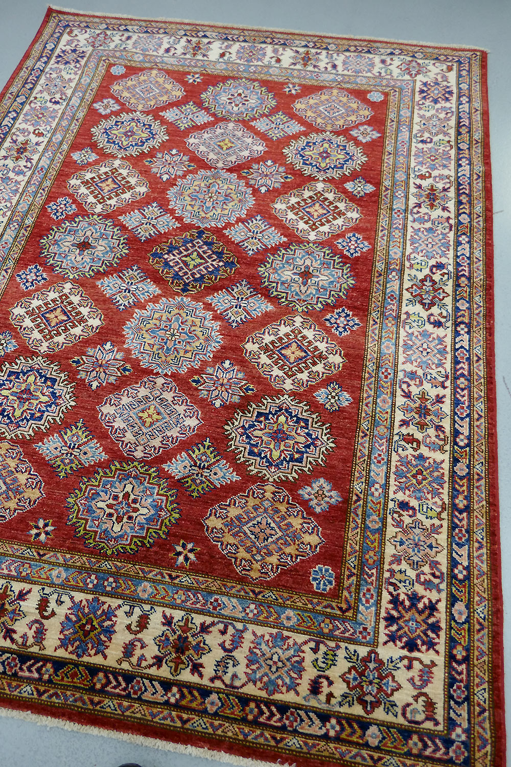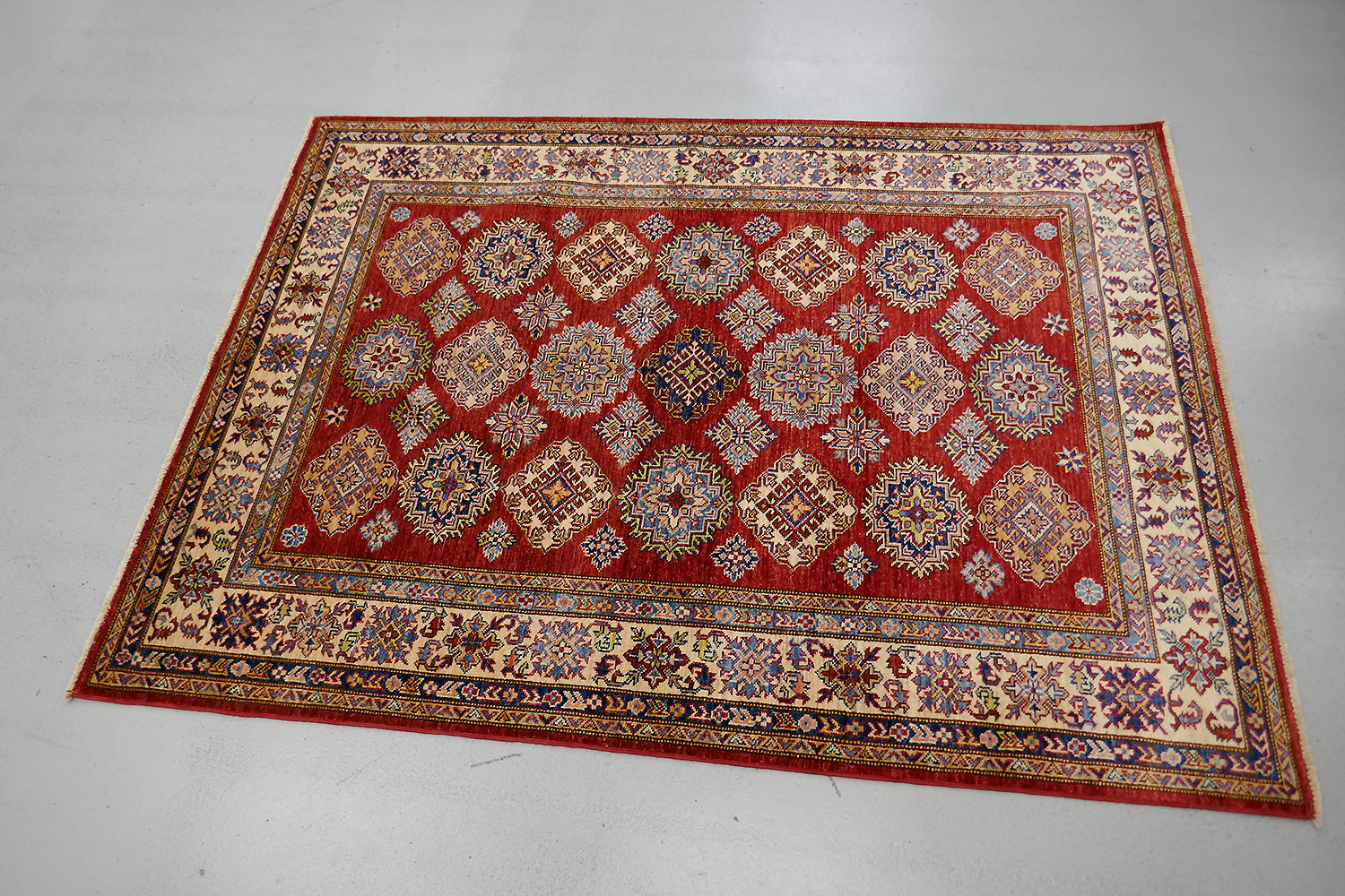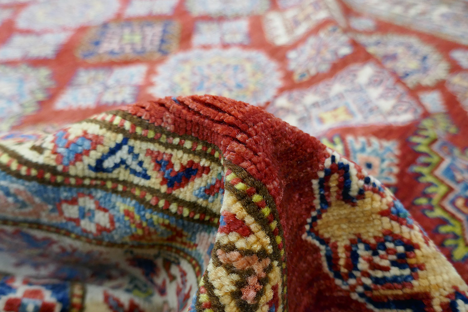 Dimensions : 207 x 143 cm -laine- Pays Afghanistan - Épaisseur : 8 mm - Densité de nouage : 300.000 Nœuds au m² - Surface : 2.96 m² - Poids : 8.88 Kgs - Age : contemporain - Confection : Noué main - Forme : Tapis de chambre - Type : Tapis Oriental