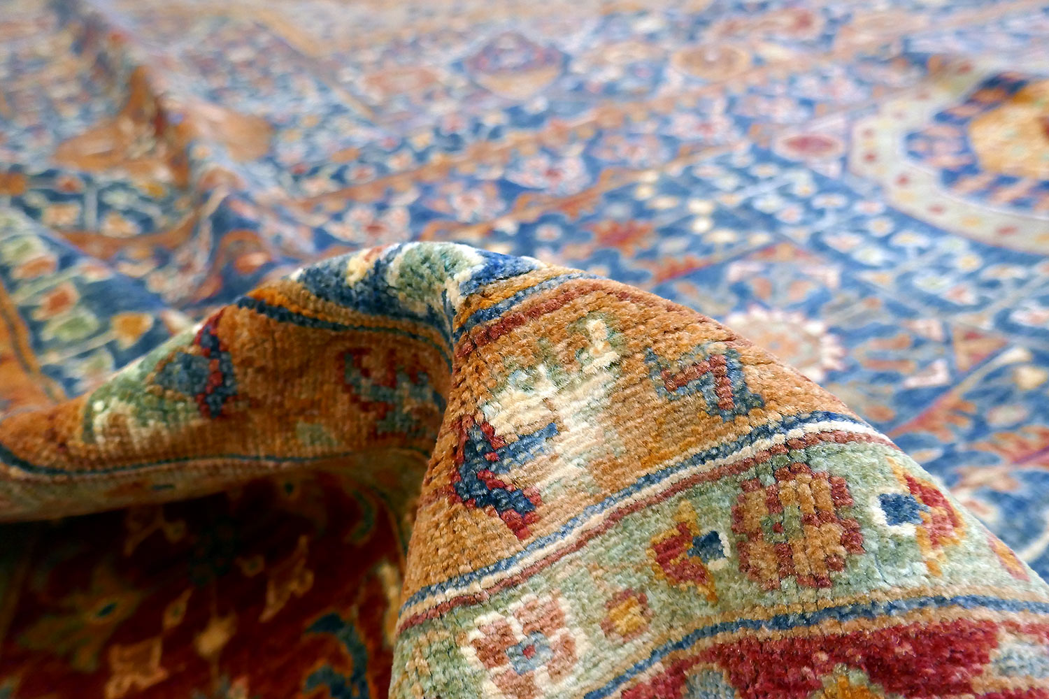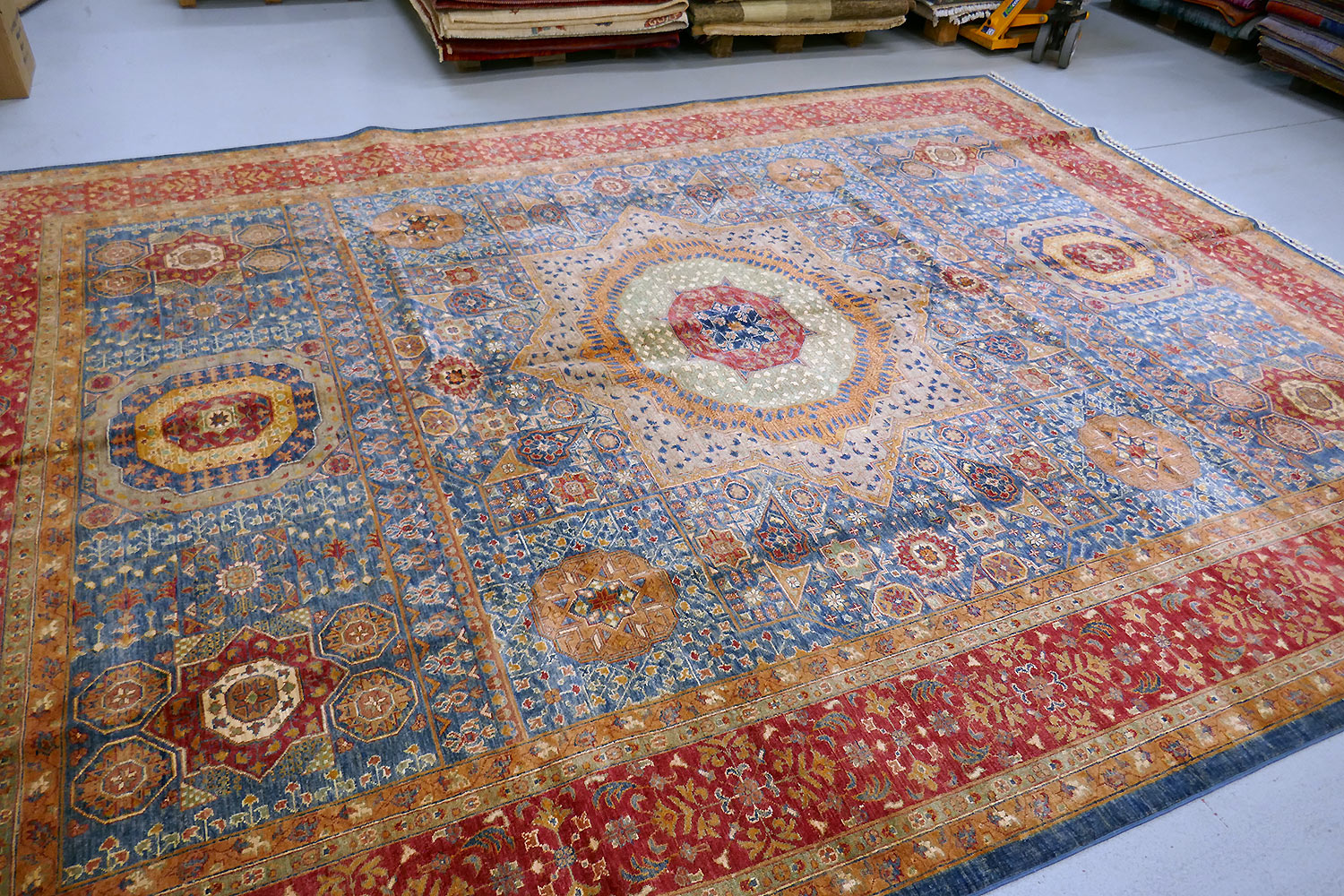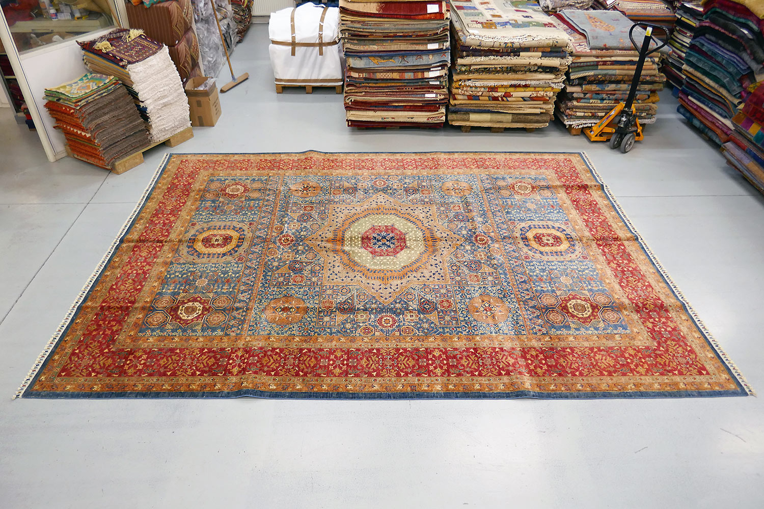 Dimensions : 390 x 301 cm -laine- Pays Afghanistan - Épaisseur : 8 mm - Densité de nouage : 300.000 Nœuds au m² - Surface : 11.74 m² - Poids : 35.22 Kgs - Age : contemporain - Confection : Noué main - Forme : Tapis de salon - Type : Tapis Oriental