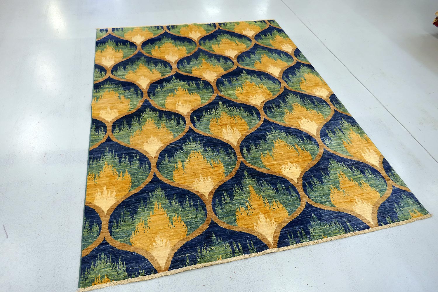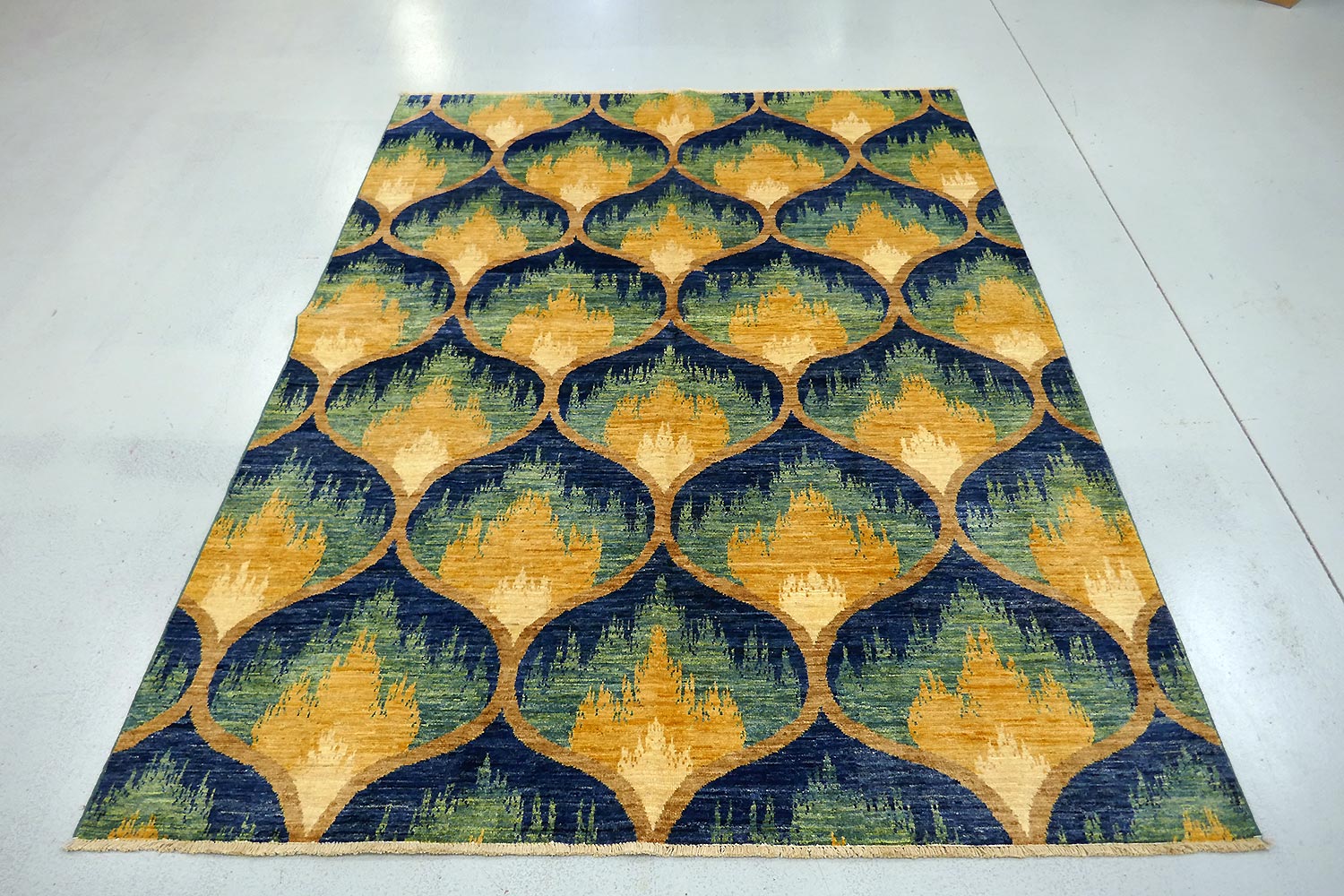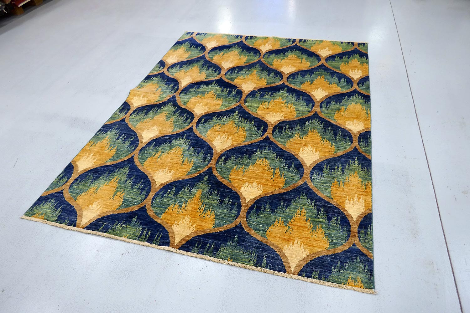 Dimensions : 228 x 176 cm -laine- Pays Afghanistan - Épaisseur : 8 mm - Densité de nouage : 200.000 Nœuds au m² - Surface : 4.01 m² - Poids : 12.04 Kgs - Age : contemporain - Confection : Noué main - Forme : Tapis de chambre - Type : Tapis de decoration