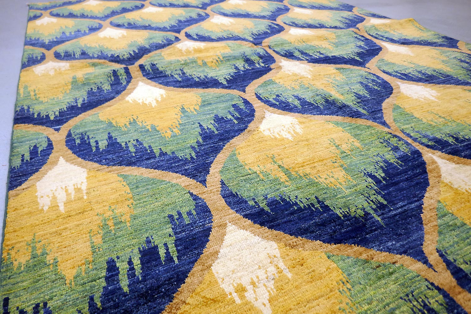 Dimensions : 250 x 171 cm -laine et soie- Pays Afghanistan - Épaisseur : 8 mm - Densité de nouage : 200.000 Nœuds au m² - Surface : 4.28 m² - Poids : 10.69 Kgs - Age : contemporain - Confection : Noué main - Forme : Tapis de salon - Type : Tapis de decoration