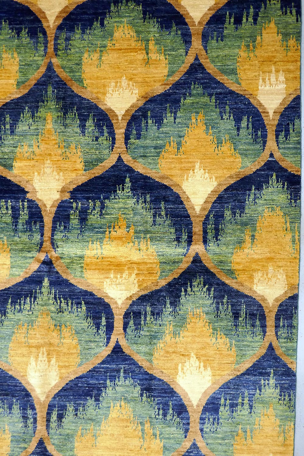 Dimensions : 240 x 170 cm -laine et soie- Pays Afghanistan - Épaisseur : 8 mm - Densité de nouage : 200.000 Nœuds au m² - Surface : 4.08 m² - Poids : 10.2 Kgs - Age : contemporain - Confection : Noué main - Forme : Tapis de chambre - Type : Tapis de decoration