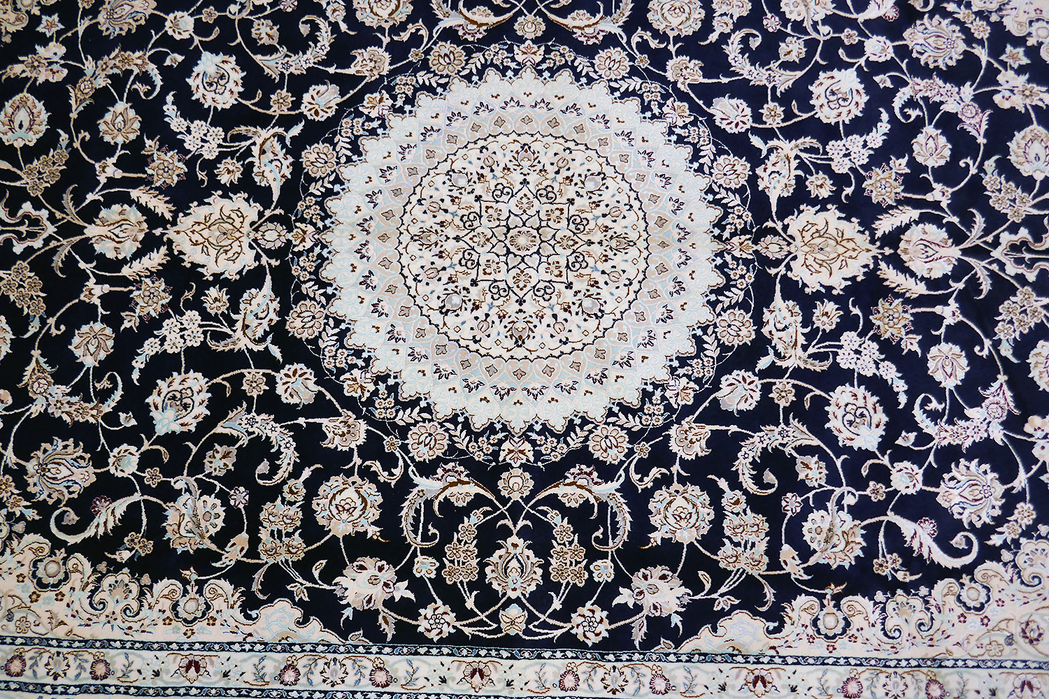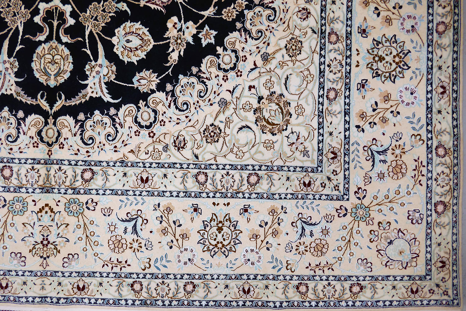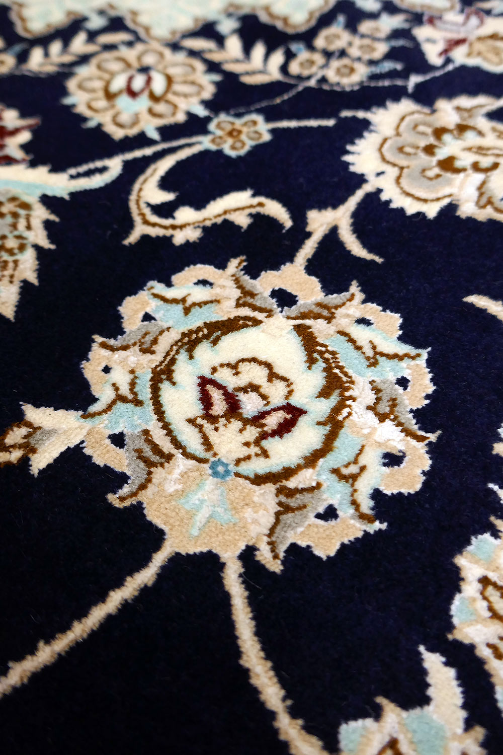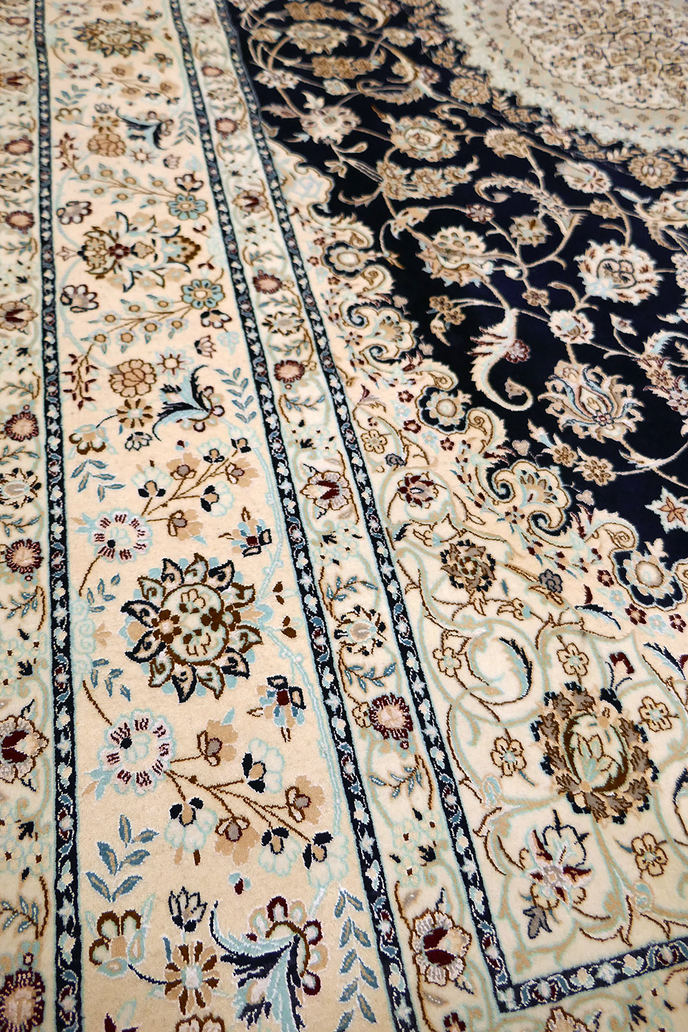 Dimensions : 310 x 210 cm -laine et soie- Pays Iran - Épaisseur : 8 mm - Densité de nouage : 800.000 Nœuds au m² - Surface : 6.51 m² - Poids : 16.28 Kgs - Age : contemporain - Confection : Noué main - Forme : Tapis de salon - Type : Tapis persan