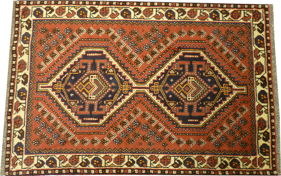 Dimensions : 147 x 103 cm -laine- Pays Iran - Épaisseur : 8 mm - Densité de nouage : 100.000 Nœuds au m² - Surface : 1.51 m² - Poids : 4.54 Kgs - Age : contemporain - Confection : Noué main - Forme : Tapis de chambre - Type : Tapis persan