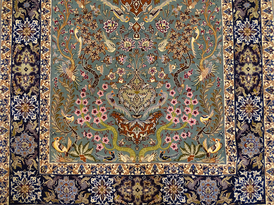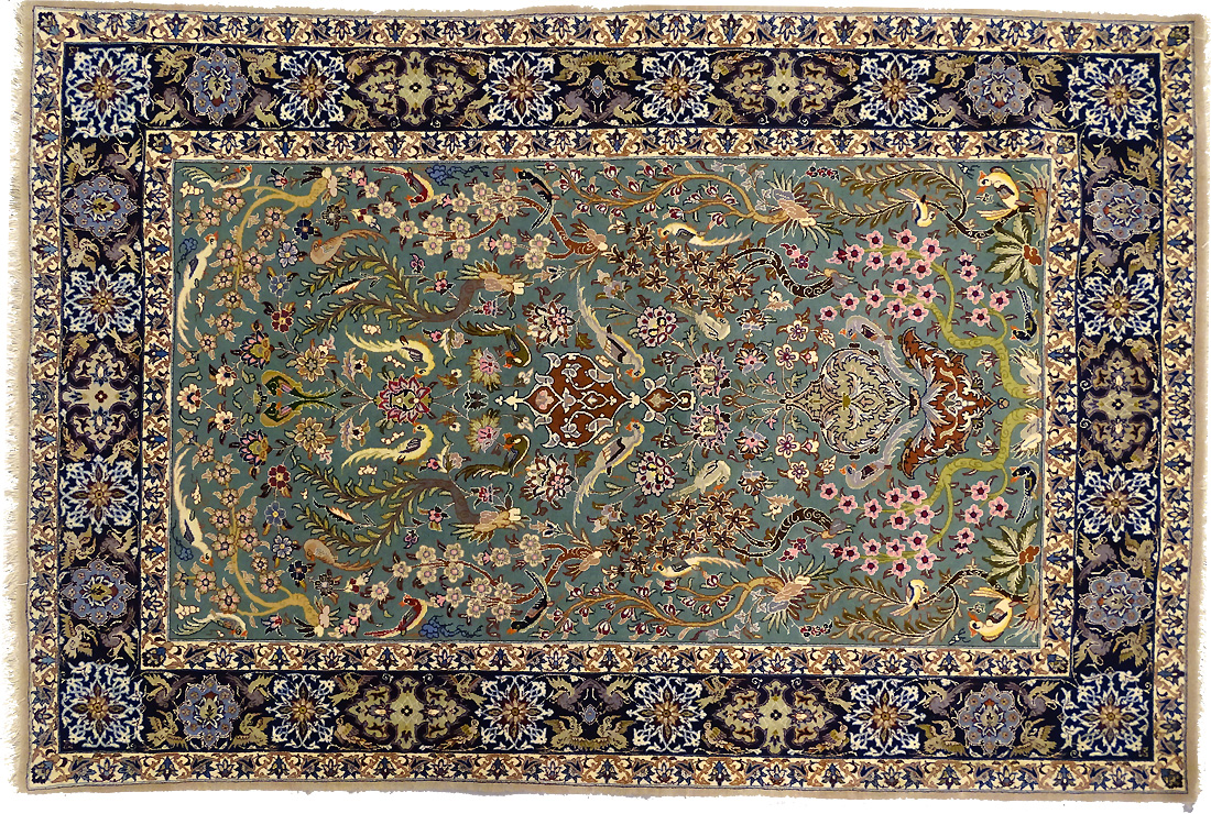 Dimensions : 186 x 133 cm -laine et soie- Pays Iran - Épaisseur : 7 mm - Densité de nouage : 800.000 Nœuds au m² - Surface : 2.47 m² - Poids : 6.18 Kgs - Age : contemporain - Confection : Noué main - Forme : Tapis de chambre - Type : Tapis persan